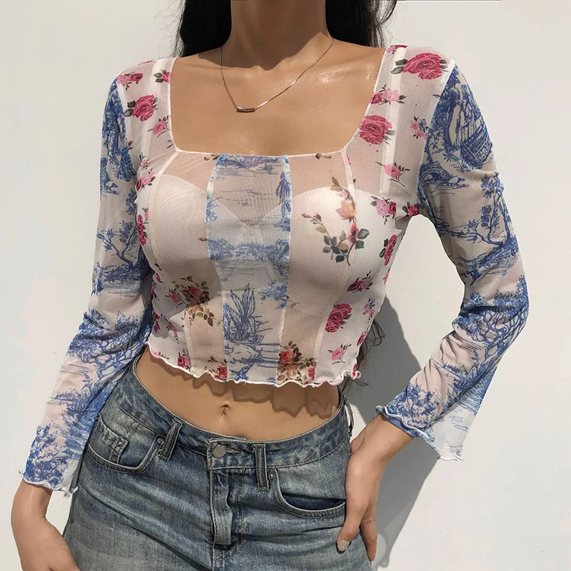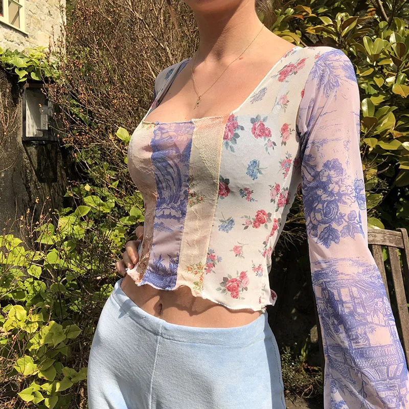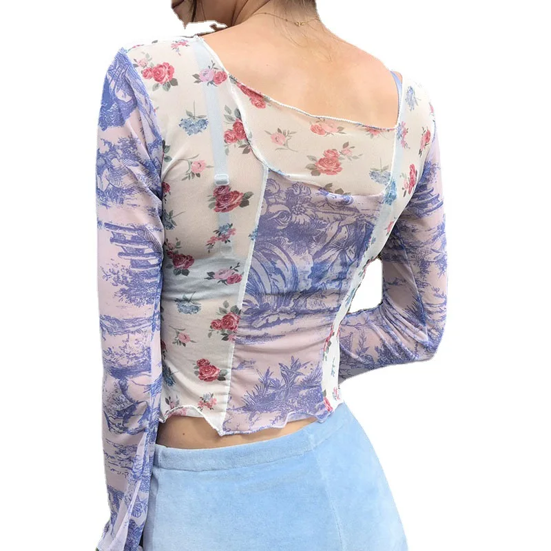 Женская Сетчатая футболка с цветочным принтом ArtSu Y2K, в стиле пэ...