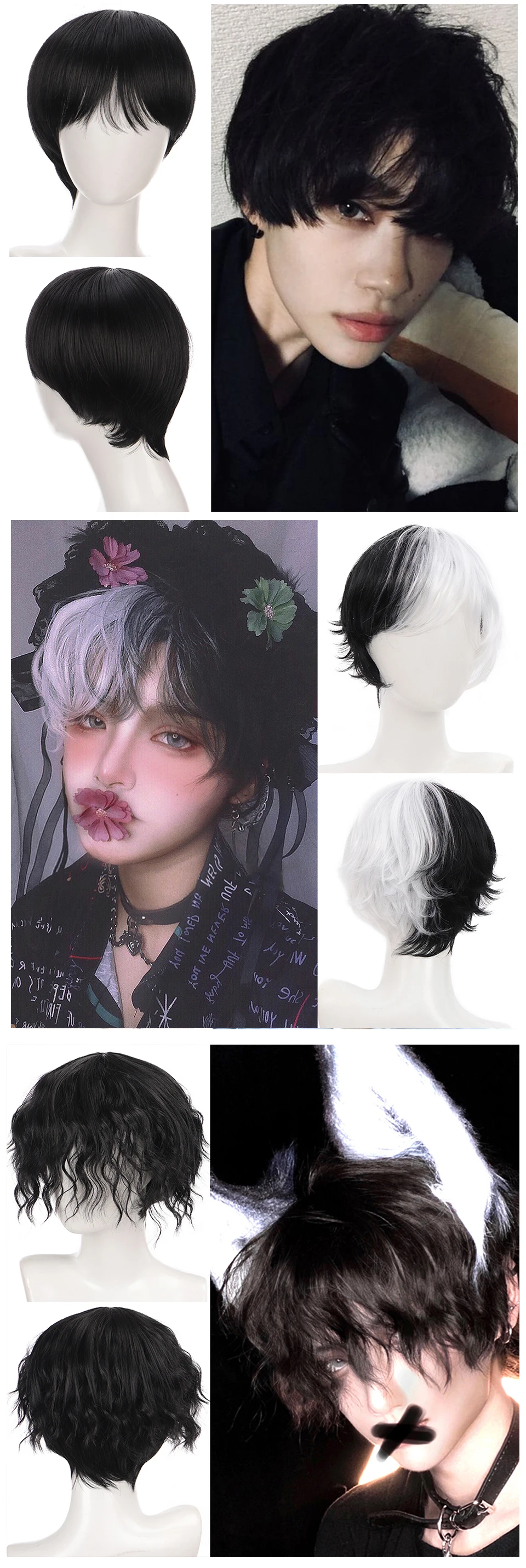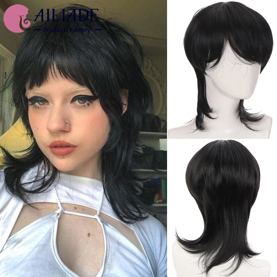 Парик AILIADE синтетический короткий прямой для мужчин и женщин, термостойкие повседневные искусственные волосы, цвет черныйблонд, для косплея, вечеринки, Хэллоуина