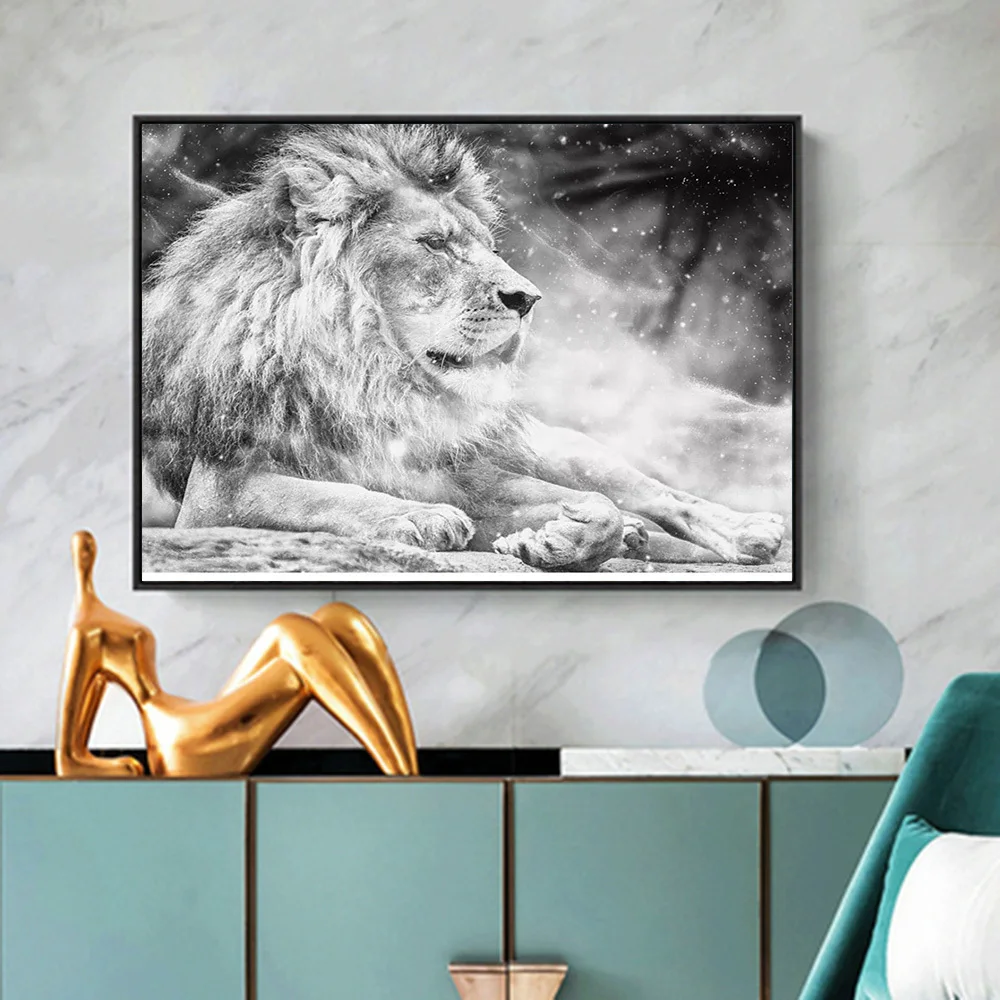 Алмазная живопись 5d Huacan сделай сам, мозаика с Львом, черно-белая, украшение сделай сам, вышивка крестиком, животное, стикер на стену с кристаллами