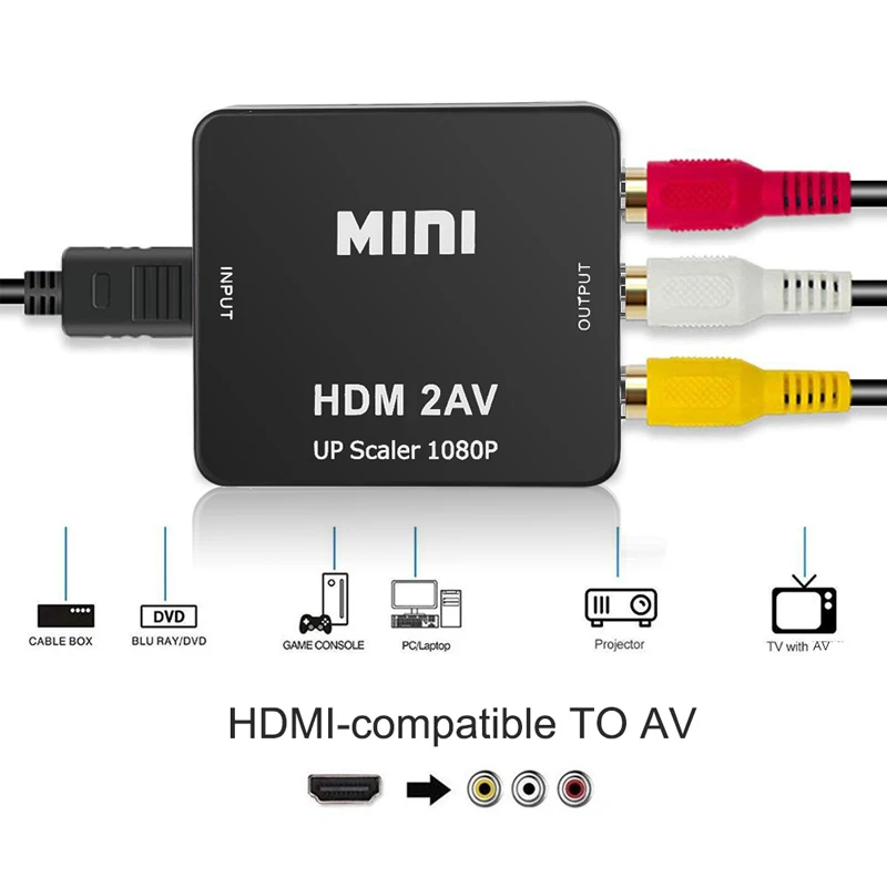 Адаптер-преобразователь HDMI-совместимый с AVCVSB LR, HD-видео композитный преобразователь, HD-видео 1080P, поддержка NTSC PAL выхода
