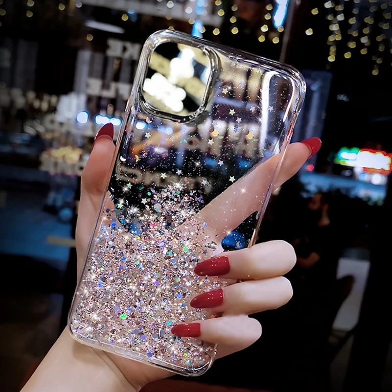 Роскошный блестящий силиконовый чехол со звездами для iPhone 12 Mini 11 13 Pro Max, прозрачный силиконовый чехол для iPhone Xs Max X Xr 6 6s 8 7 Plus
