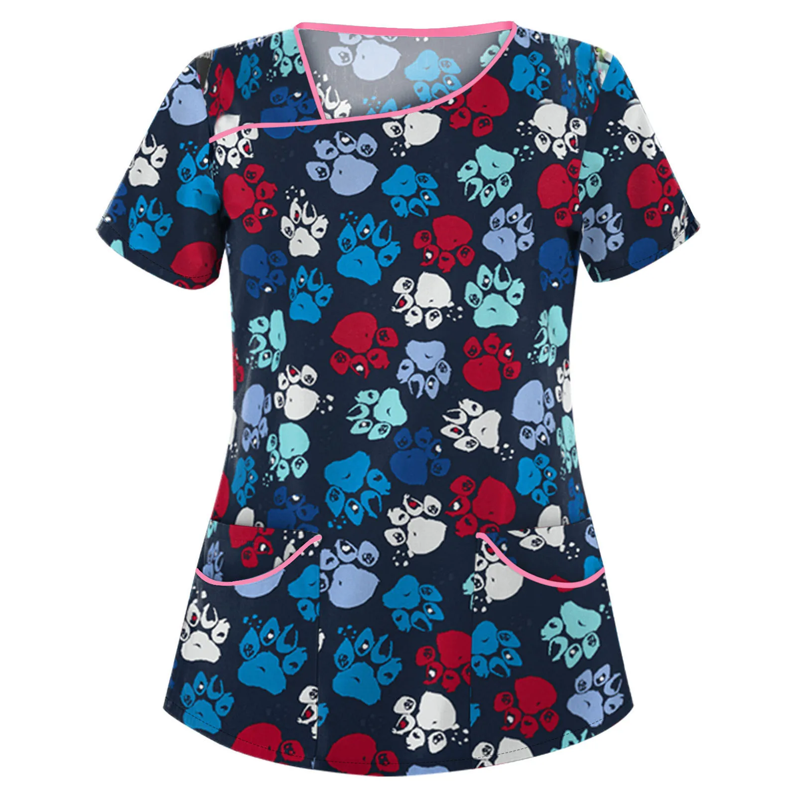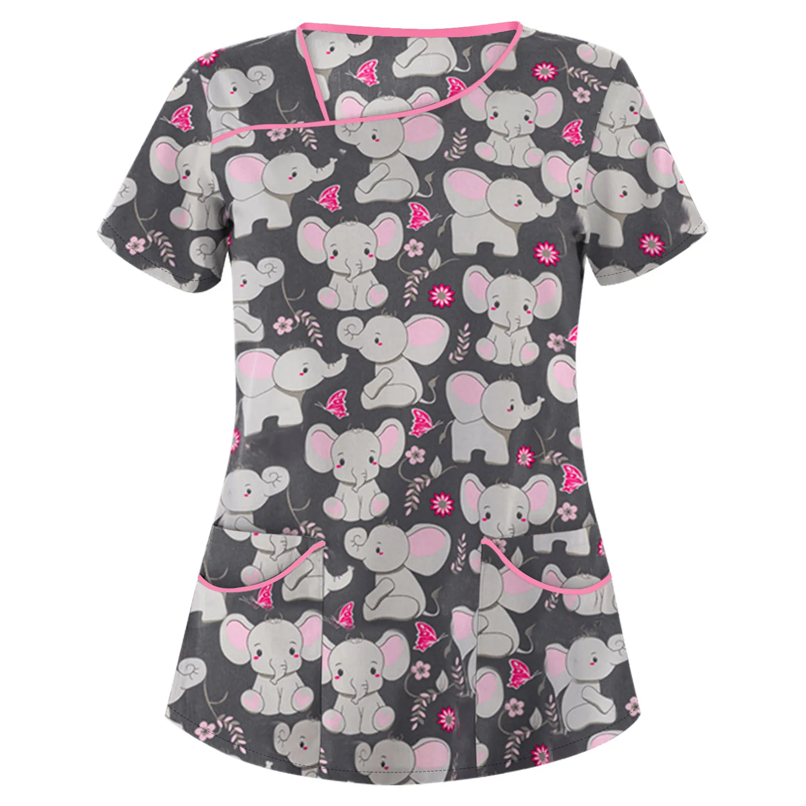 Женская Рабочая Униформа с принтом животных, с коротким рукавом и карманами