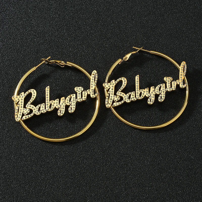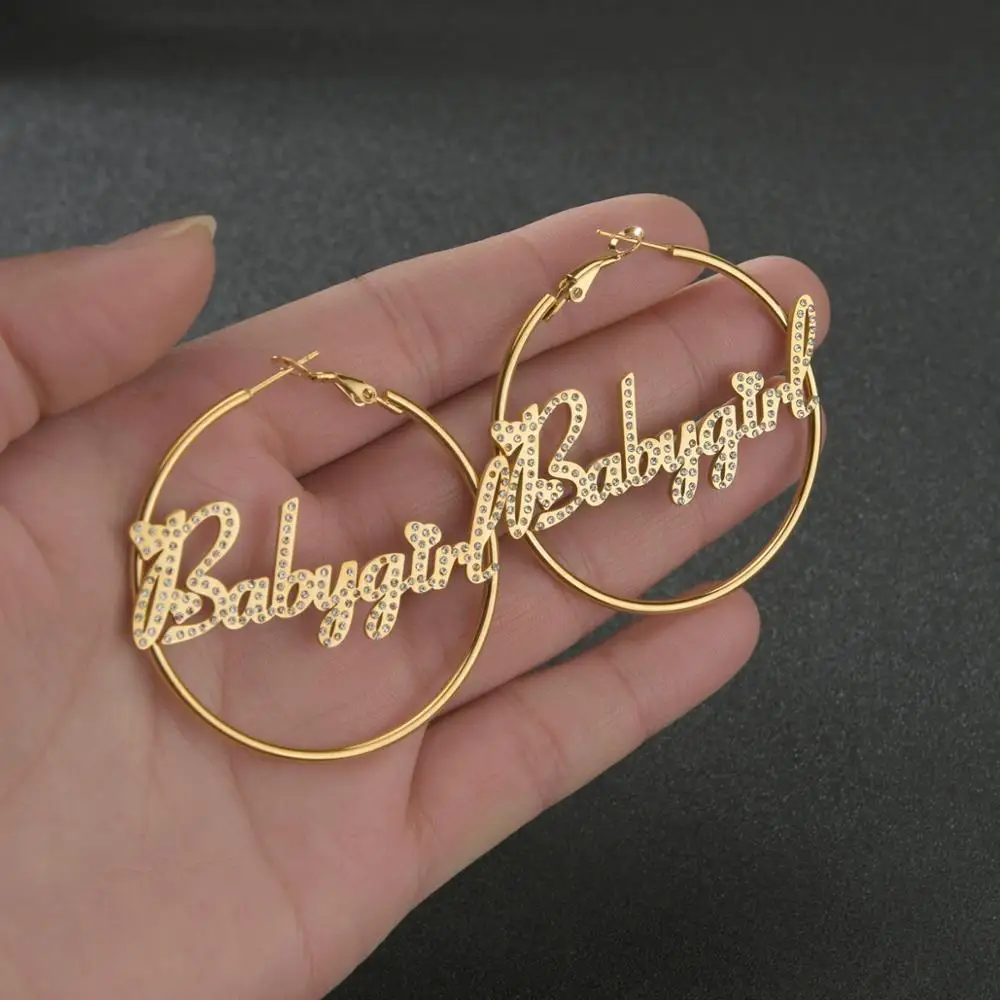 Модные серьги-кольца с именем на заказ 30 мм-100 мм из нержавеющей ...