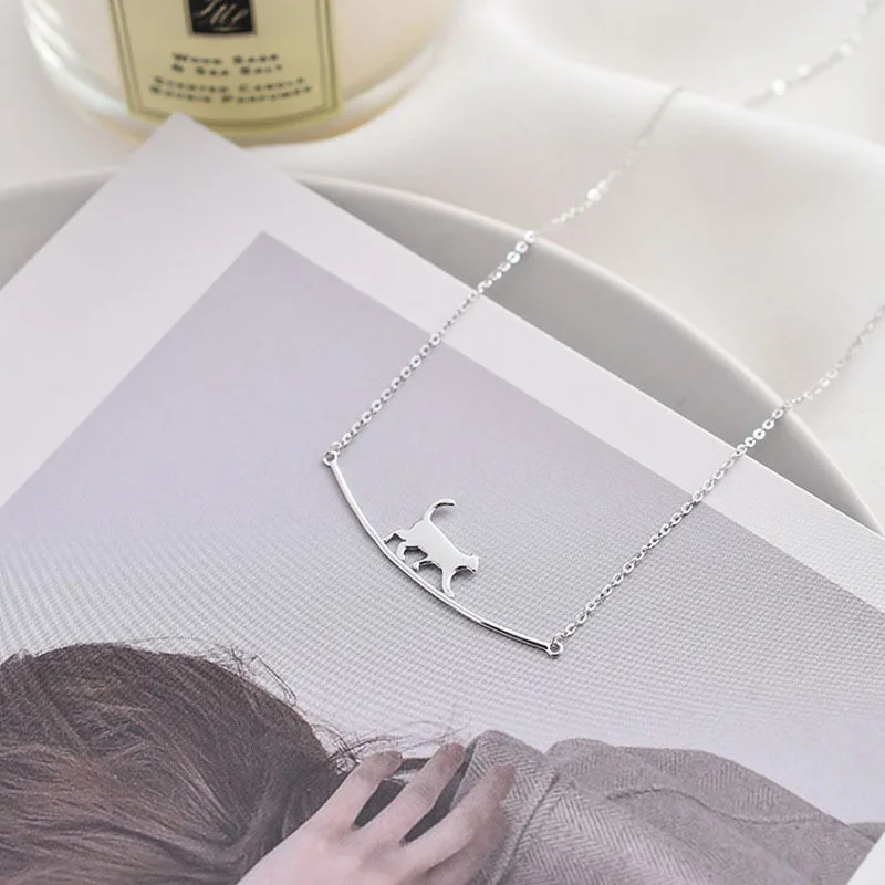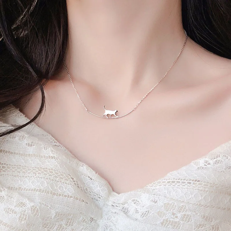 Женская мода S925 Серебряный котенок Прогулка личность кулон ожерел...