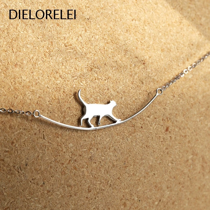 Женское Ожерелье DIELORELEI из стерлингового серебра 925 пробы с подвеской в виде нишевого кота, простой ювелирный светильник