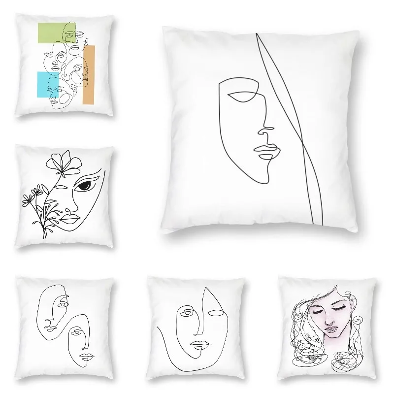 Абстрактный минималистичный чехол для диванной подушки с изображением Пабло Пикассо, геометрический чехол на половину лица с одной линией, в скандинавском стиле, чехол для подушки, украшение для дома