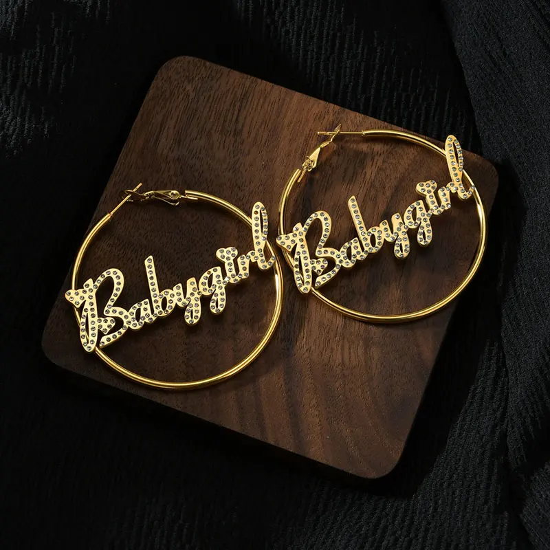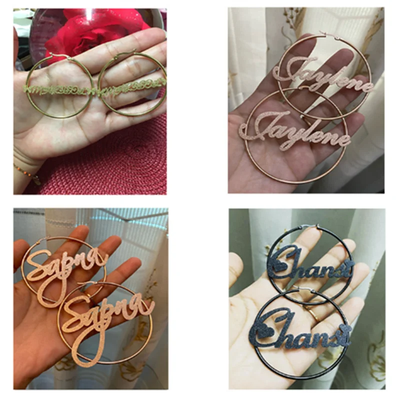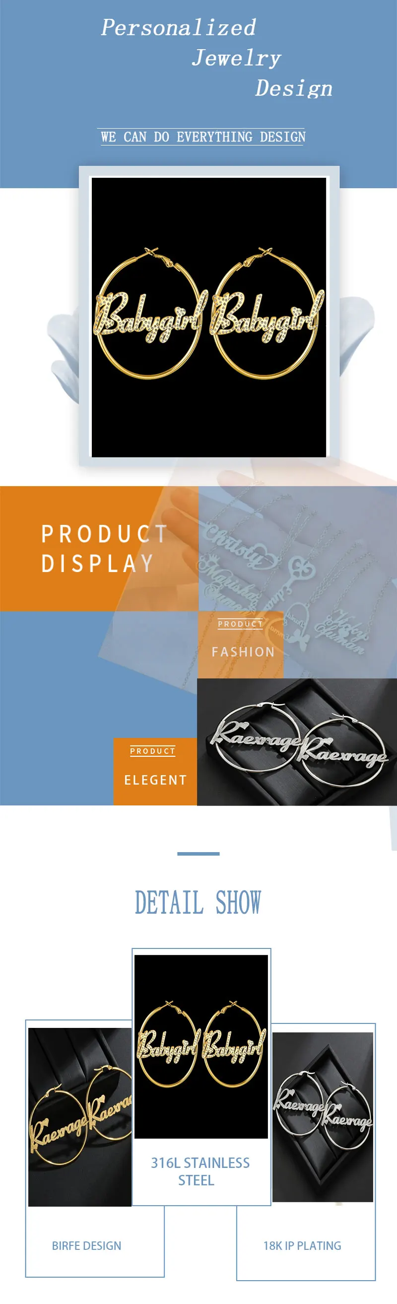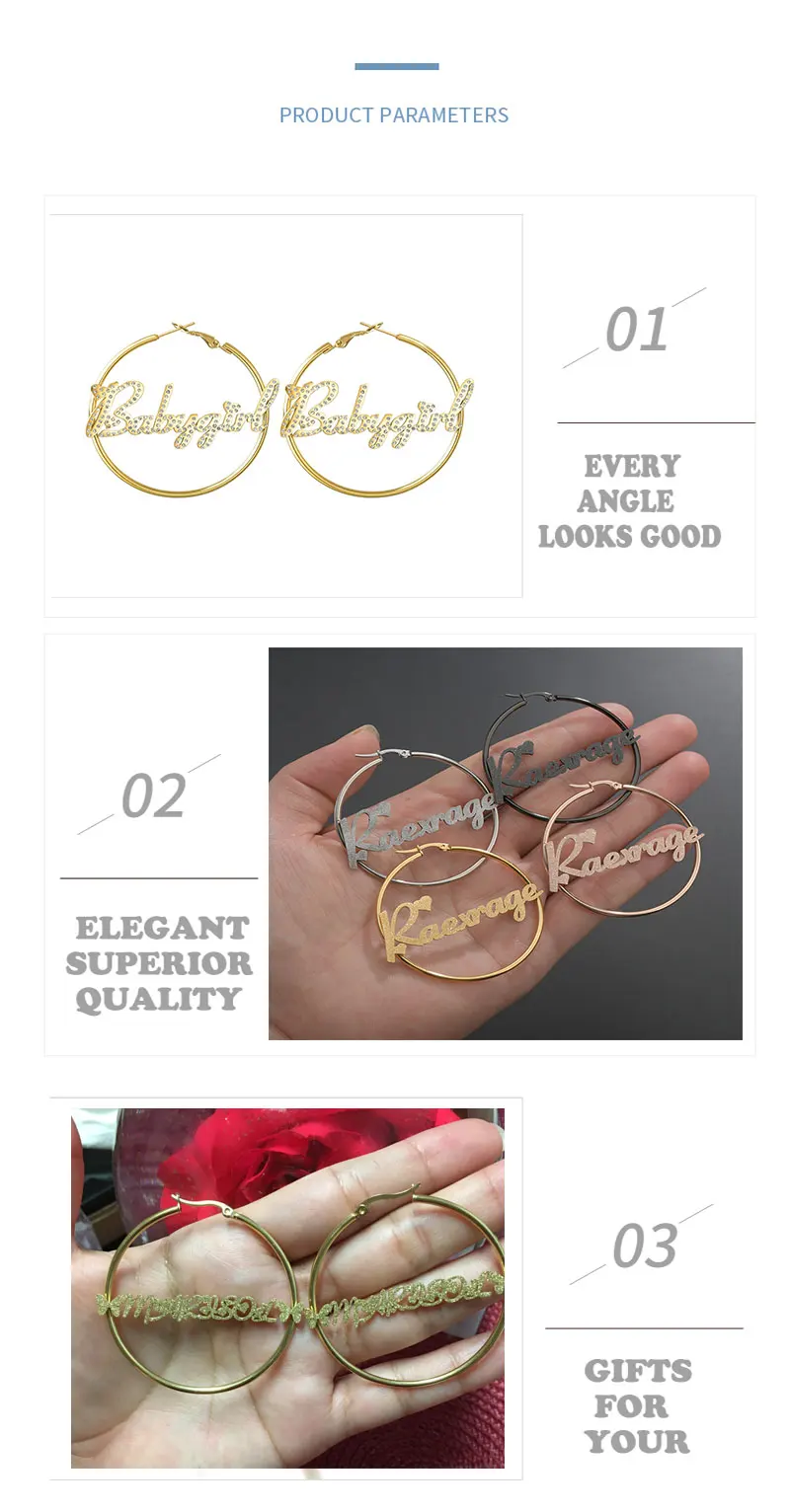 Модные серьги-кольца с именем на заказ 30 мм-100 мм из нержавеющей стали, персонализированные серьги-кольца с табличкой, эффектные ювелирные изделия