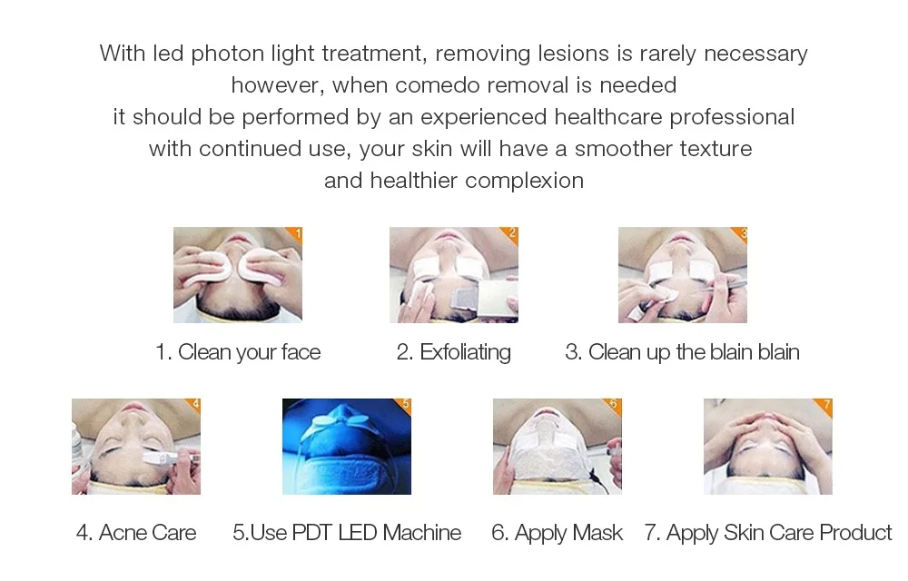 1. Очистите лицо 2. Включите и установите режим, время и интенсивность температуры 3. Нанесите маску, нанесите эссенцию и т. д. (этот шаг можно опустить, но рекомендуется использовать инструмент с продуктами по уходу за кожей) 4. Возьмите маску для глаз и наслаждайтесь светильник терапией 5. Советы: Используйте 2-3 раза в неделю по 15-20 минут каждый раз.