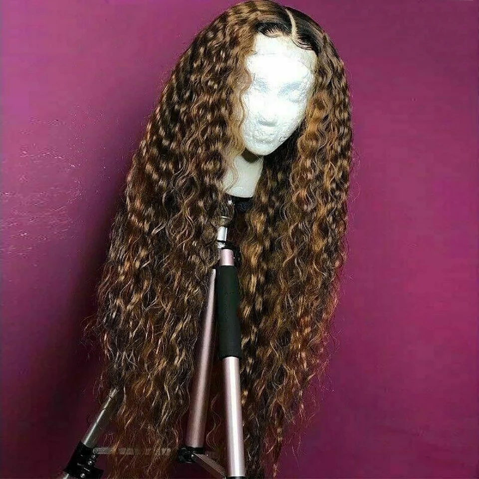 Парик бразильский кудрявый из натуральных волос 13x 4 с эффектом омбре