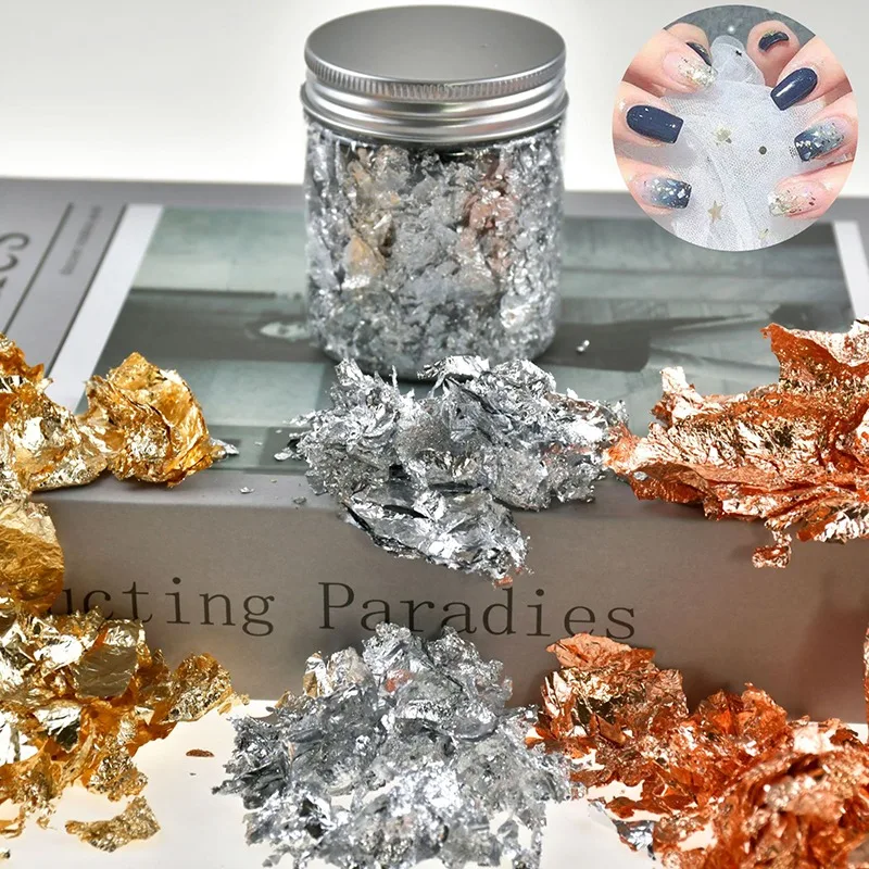 13 г имитация золотой серебряной медной фольги блестки для рукоделия листья хлопья листы сыпучая фольга бумага для золочения Сделай Сам декор для дизайна ногтей
