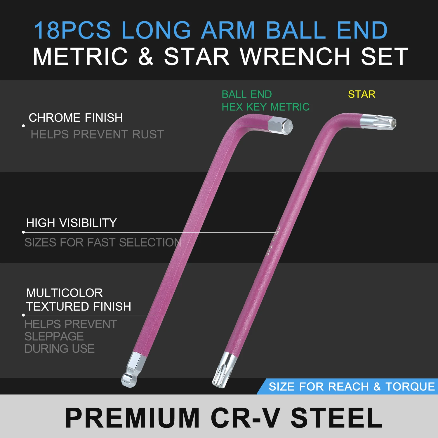 18 шт. Набор шестигранных ключей разных цветов, Набор L-образных ключей, Метрическая звезда, длинная рукоятка, шестигранный ключ, набор хром-ванадиевой стали промышленного класса