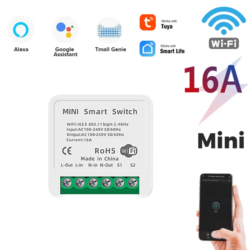 Умный выключатель с поддержкой Wi-Fi и голосового управления, 10 А16 А