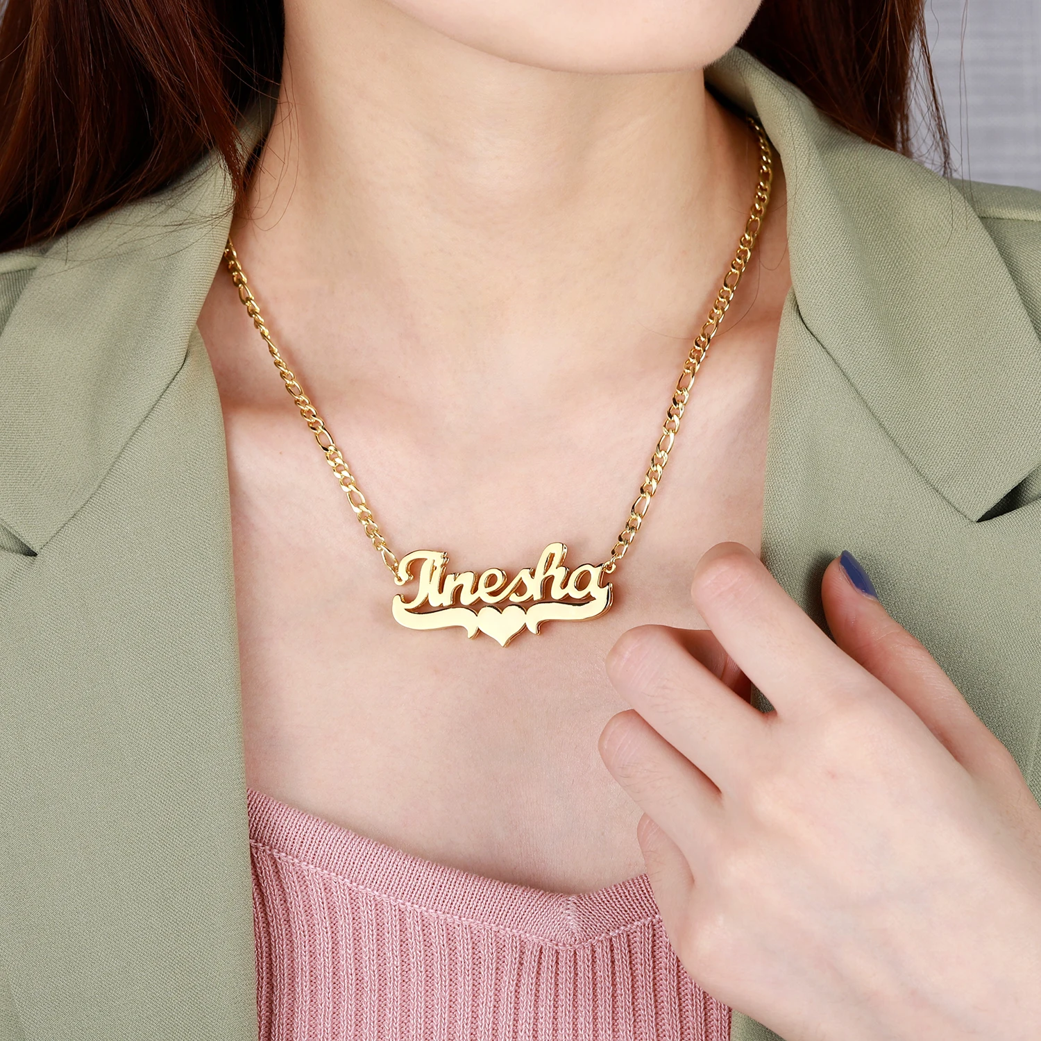 Индивидуальное ожерелье с арабским сердцем, Золотая табличка из нер...