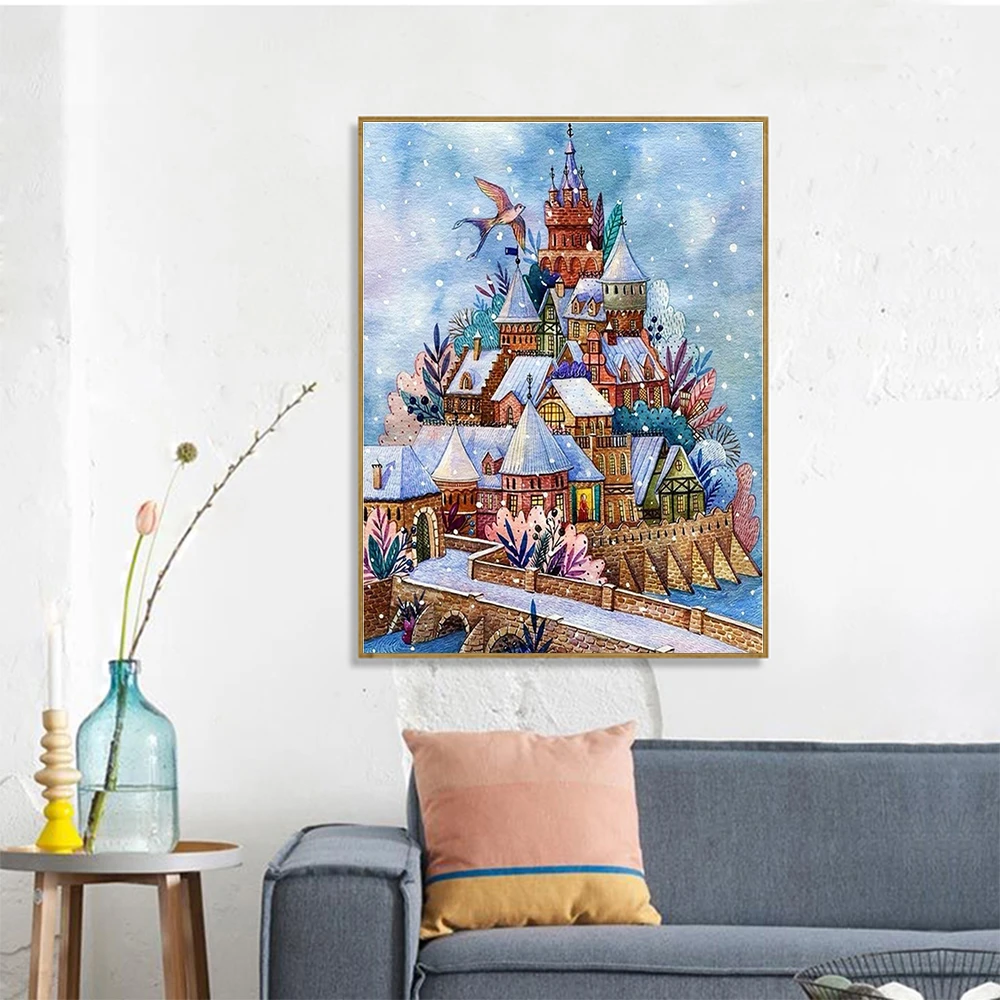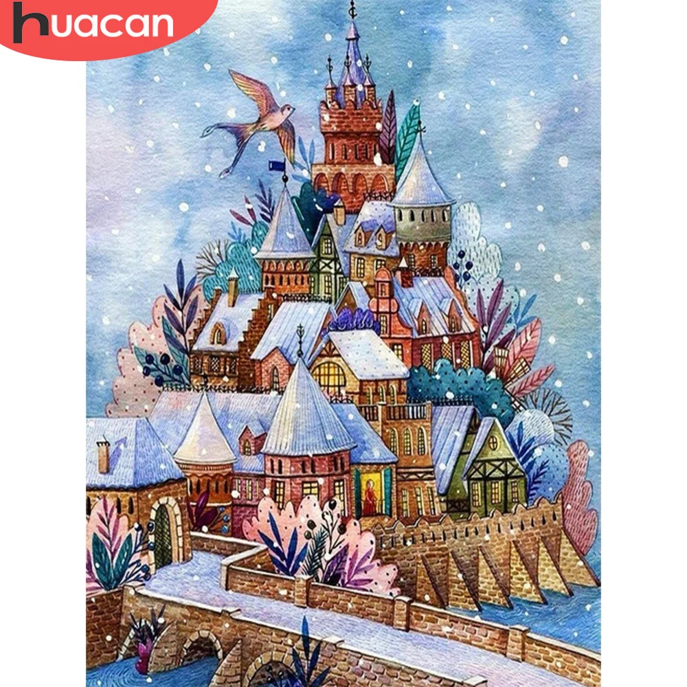 HUACAN картина по номеру зимний дом DIY картина по номерам снег пейзаж расписанный вручную Рождественский подарок украшение дома