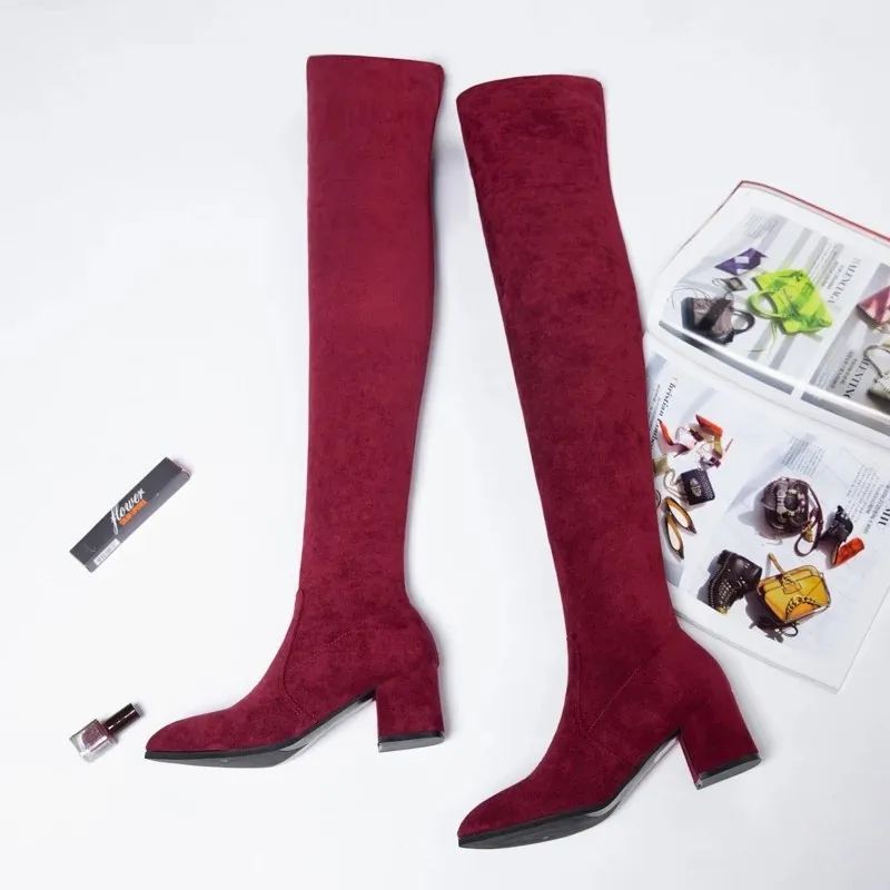 Сапоги до бедра, женские зимние модные сапоги, новинка 2021, Сапоги выше колена, женская обувь, привлекательные сапоги на высоком каблуке, Красные Теплые черные сапоги с мехом