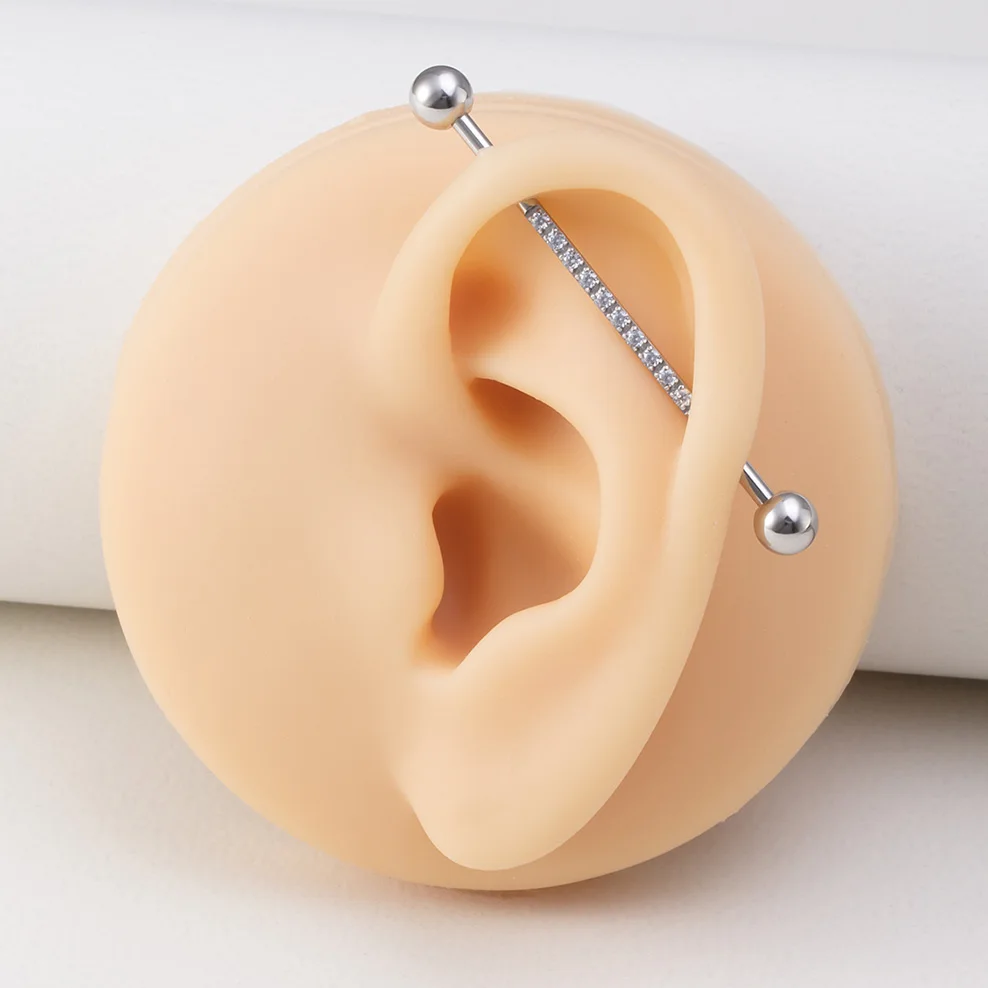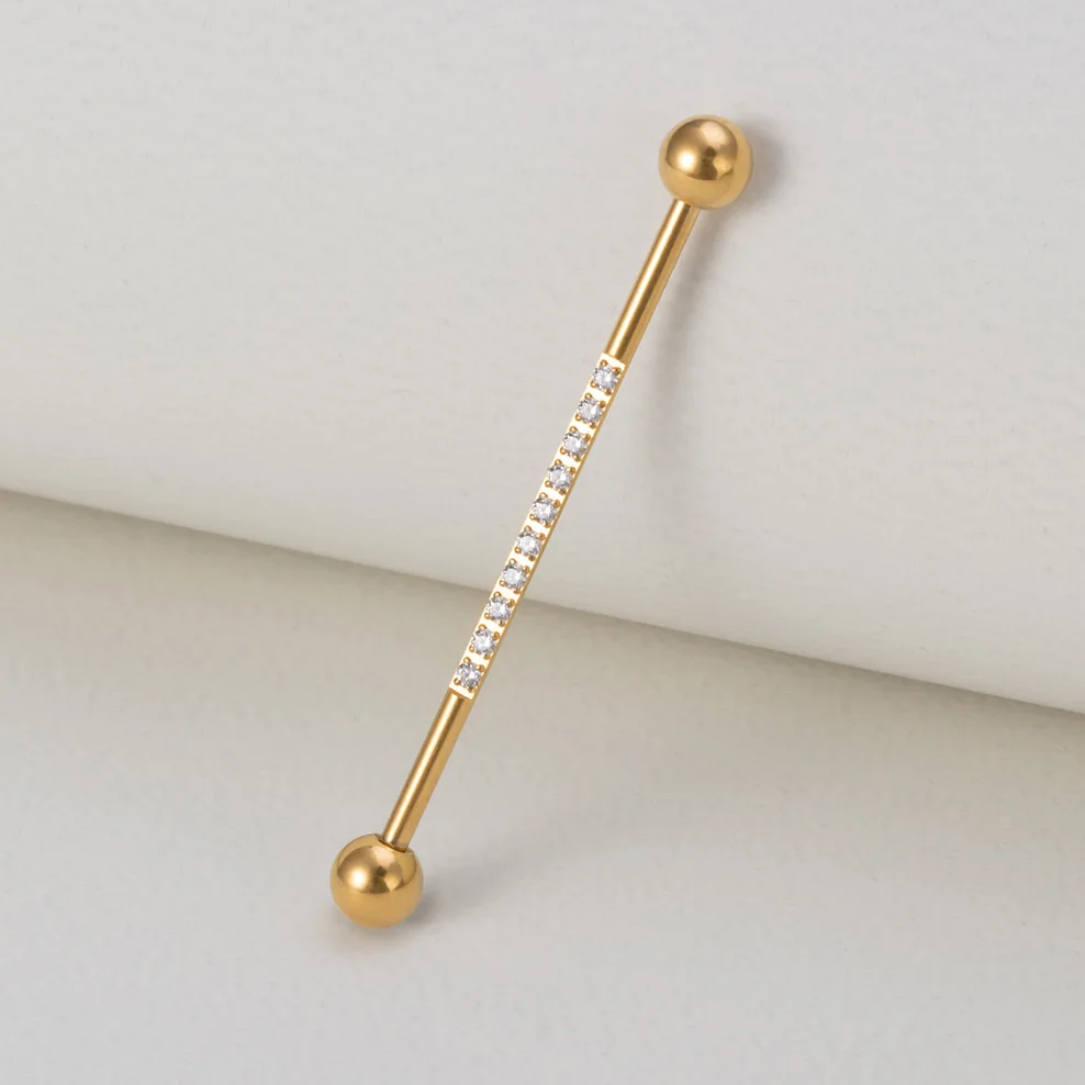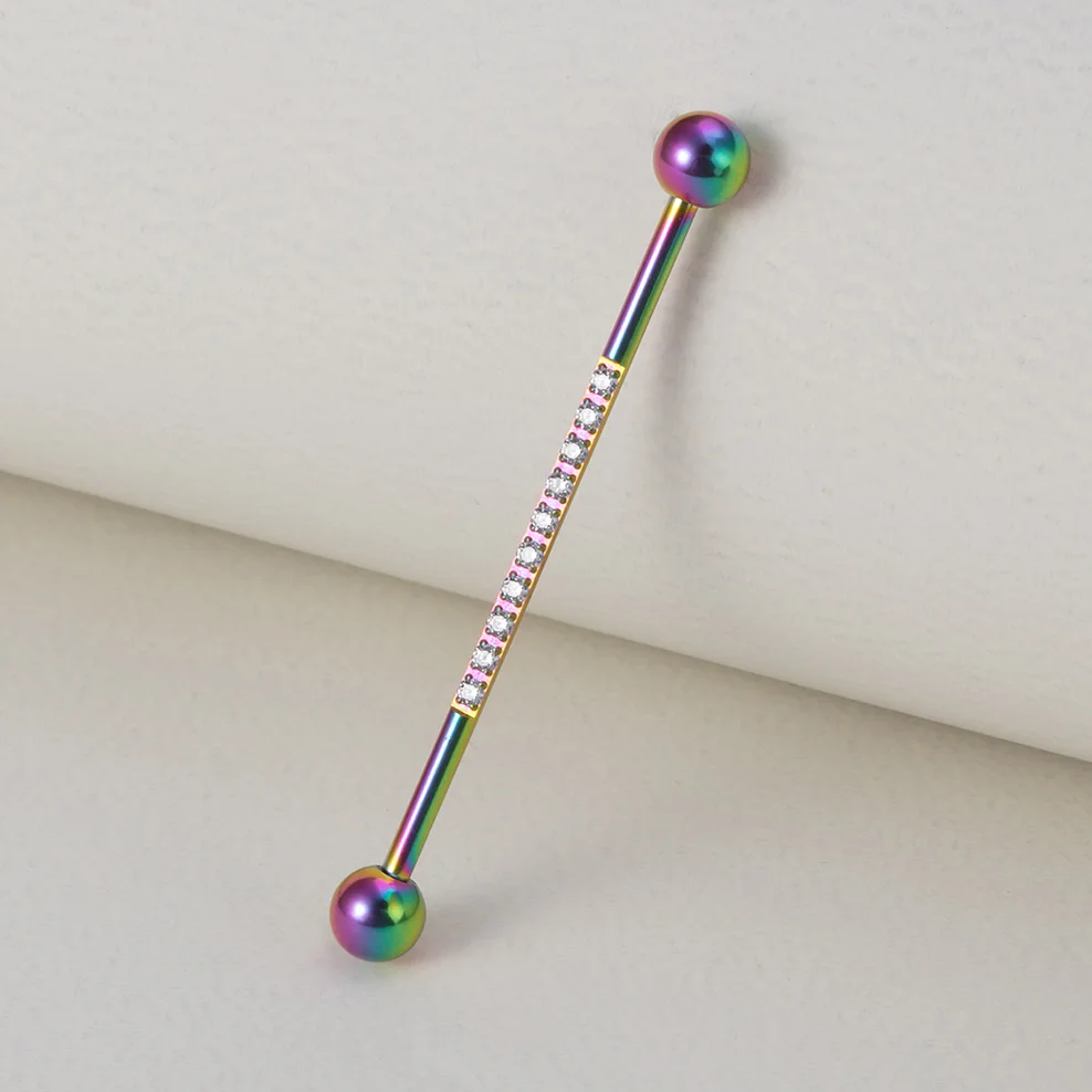 1 шт. 38 мм промышленные ювелирные изделия со штангой для женщин и мужчин инкрустированные CZ драгоценный камень из нержавеющей стали промышленная серьга в виде стержня 14 г промышленные серьги