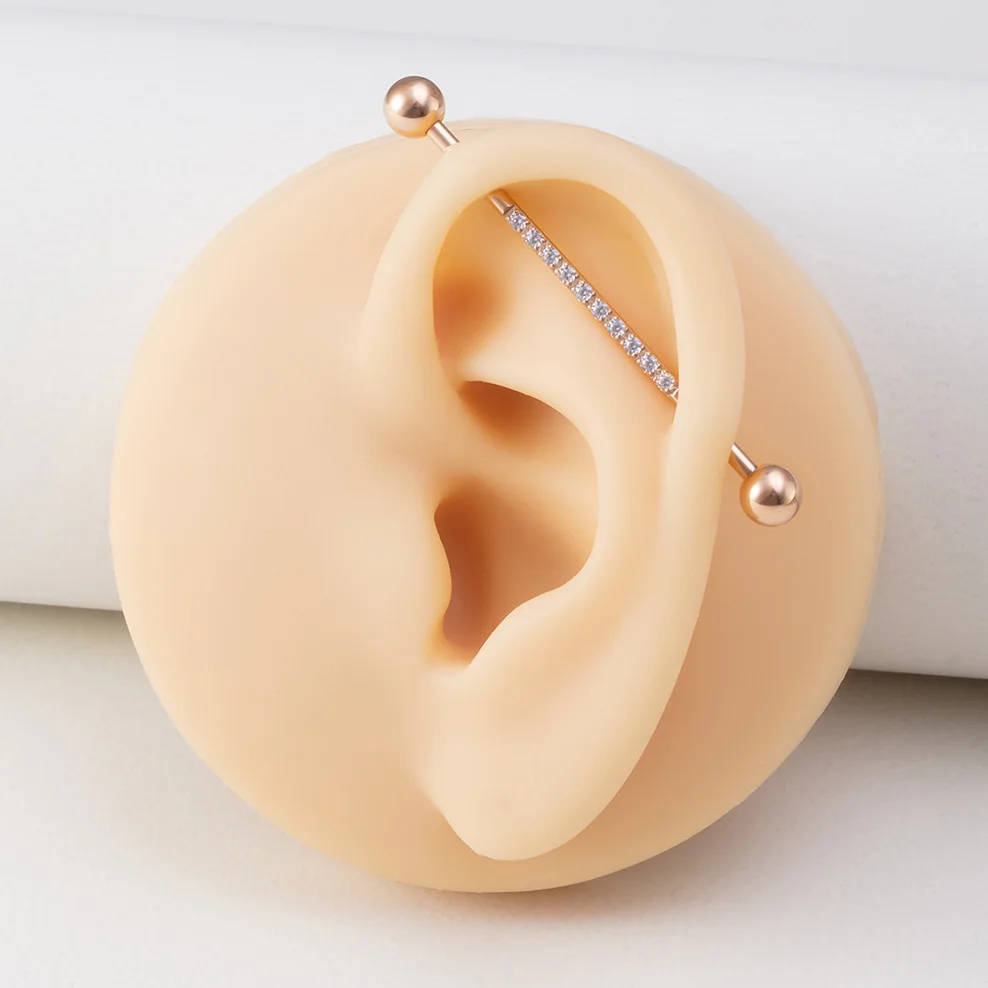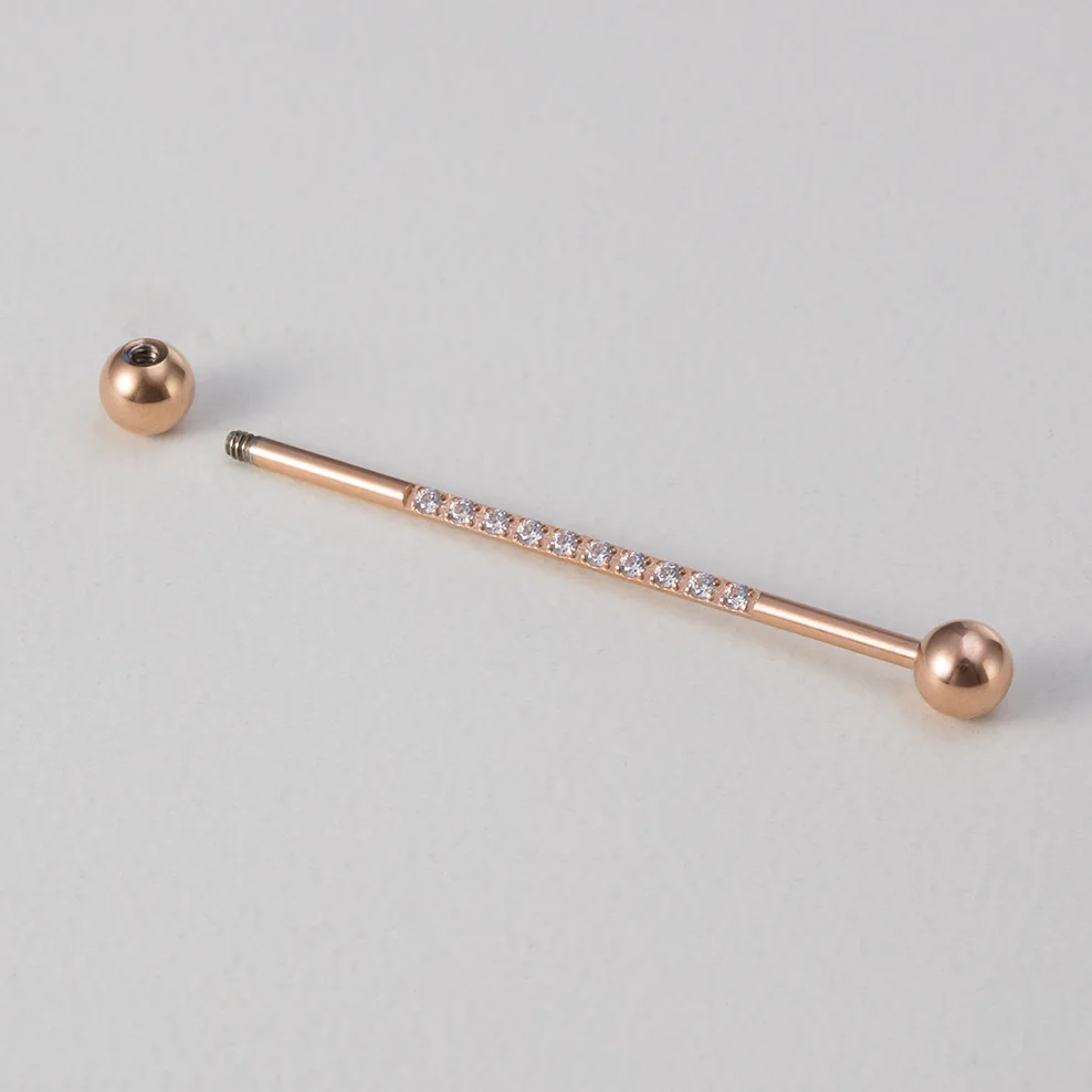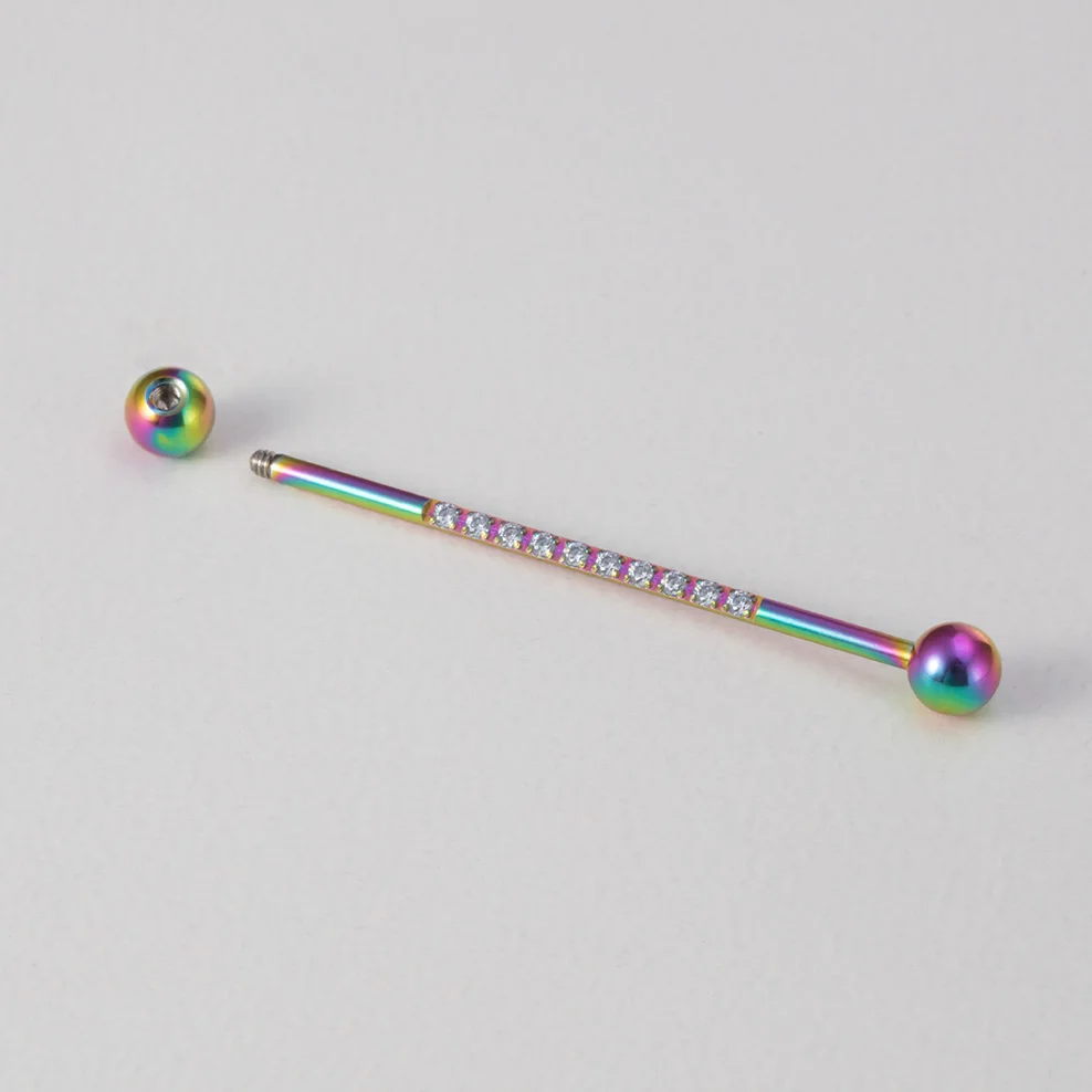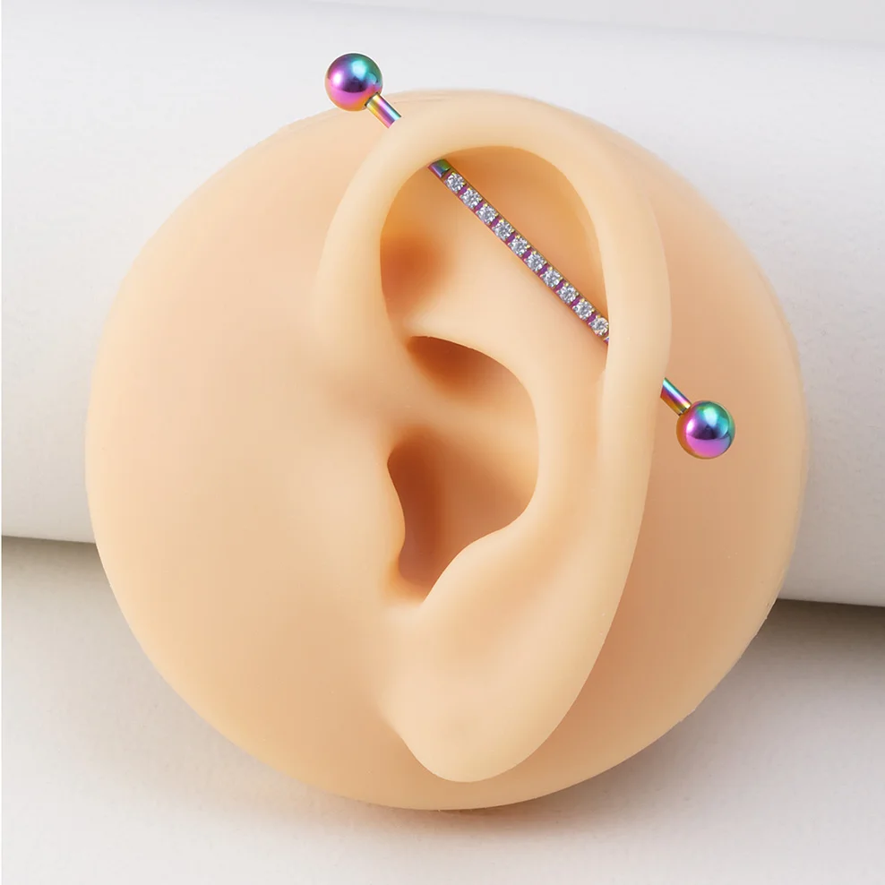 1 шт. 38 мм промышленные ювелирные изделия со штангой для женщин и мужчин инкрустированные CZ драгоценный камень из нержавеющей стали промышленная серьга в виде стержня 14 г промышленные серьги