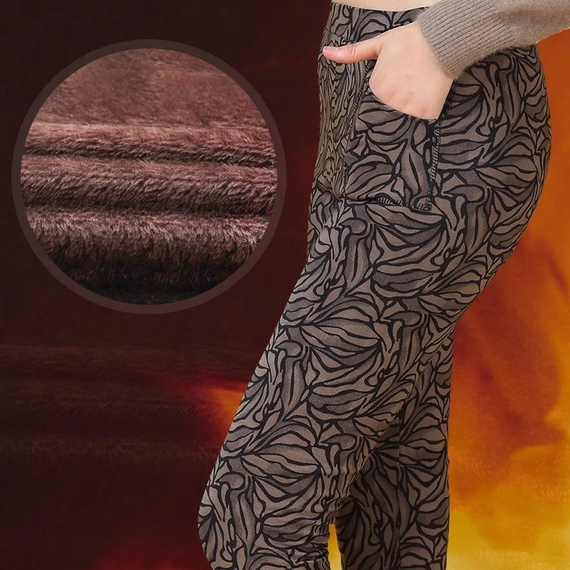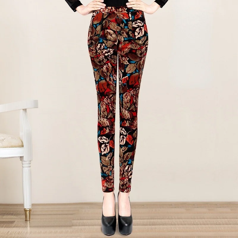 Осенне-зимние облегающие леггинсы с принтом, женские вельветовые утепленные леггинсы, теплые брюки-карандаш, одежда для пожилых женщин