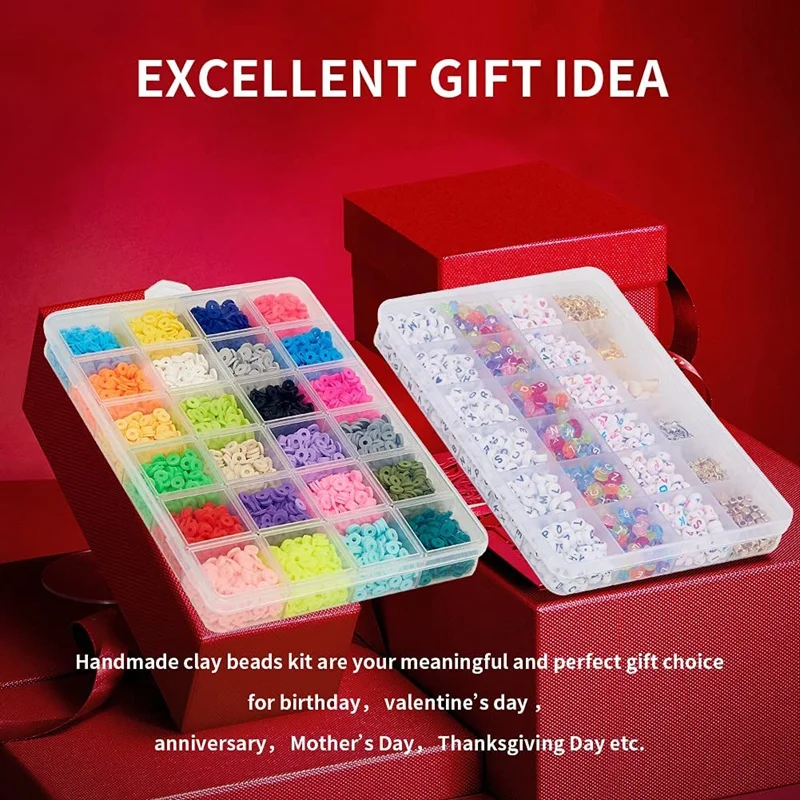 Браслет из бисера Heishi, плоские круглые бусины из глины, с 6000 бусинами с буквами, Набор для изготовления ювелирных изделий своими руками, 900 шт.