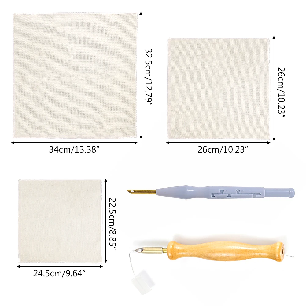 Размер ткани: около S 22.5x24.5 см/8,9x9,6 ", M 26x2 6 см/10,2x10,2", L 32.5x3 4 см/12,8x13,4"Ручка-перфоратор ABS: регулируемая длина иглы (4 размера, включая 53 мм, 43 мм, 34 мм и 24 мм)