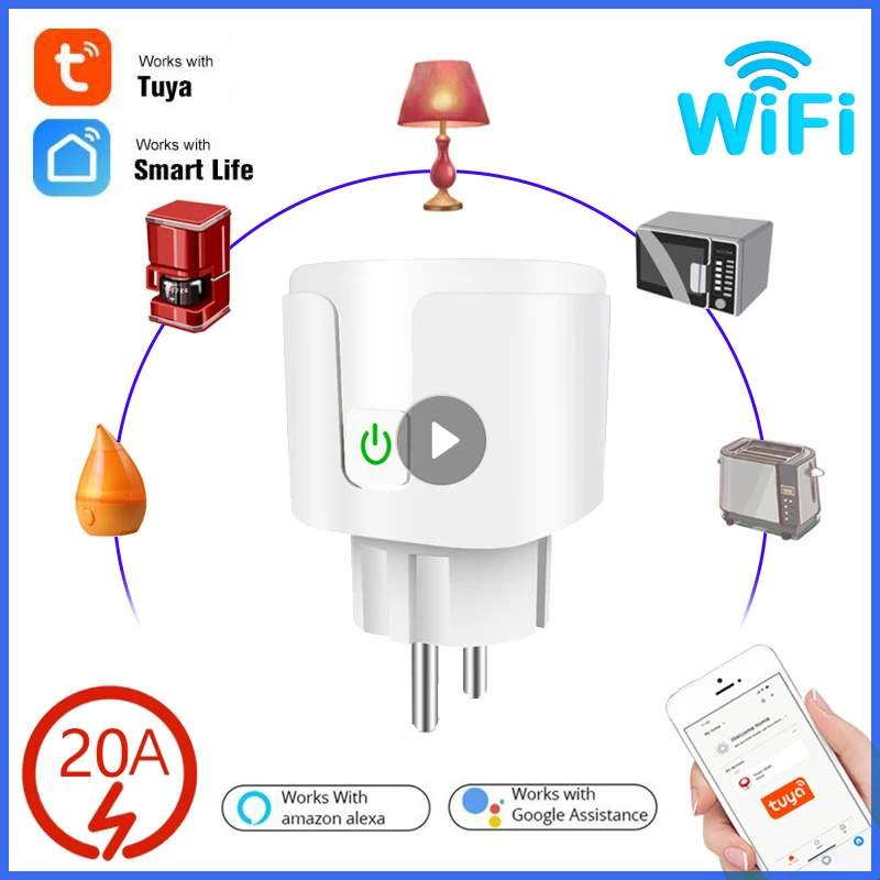 Смарт-розетка ЕС 20 А с Wi-Fi, Беспроводная электрическая розетка с дистанционным управлением, таймером, монитором питания, голосовым управлением через Alexa, Amazon, Google Home