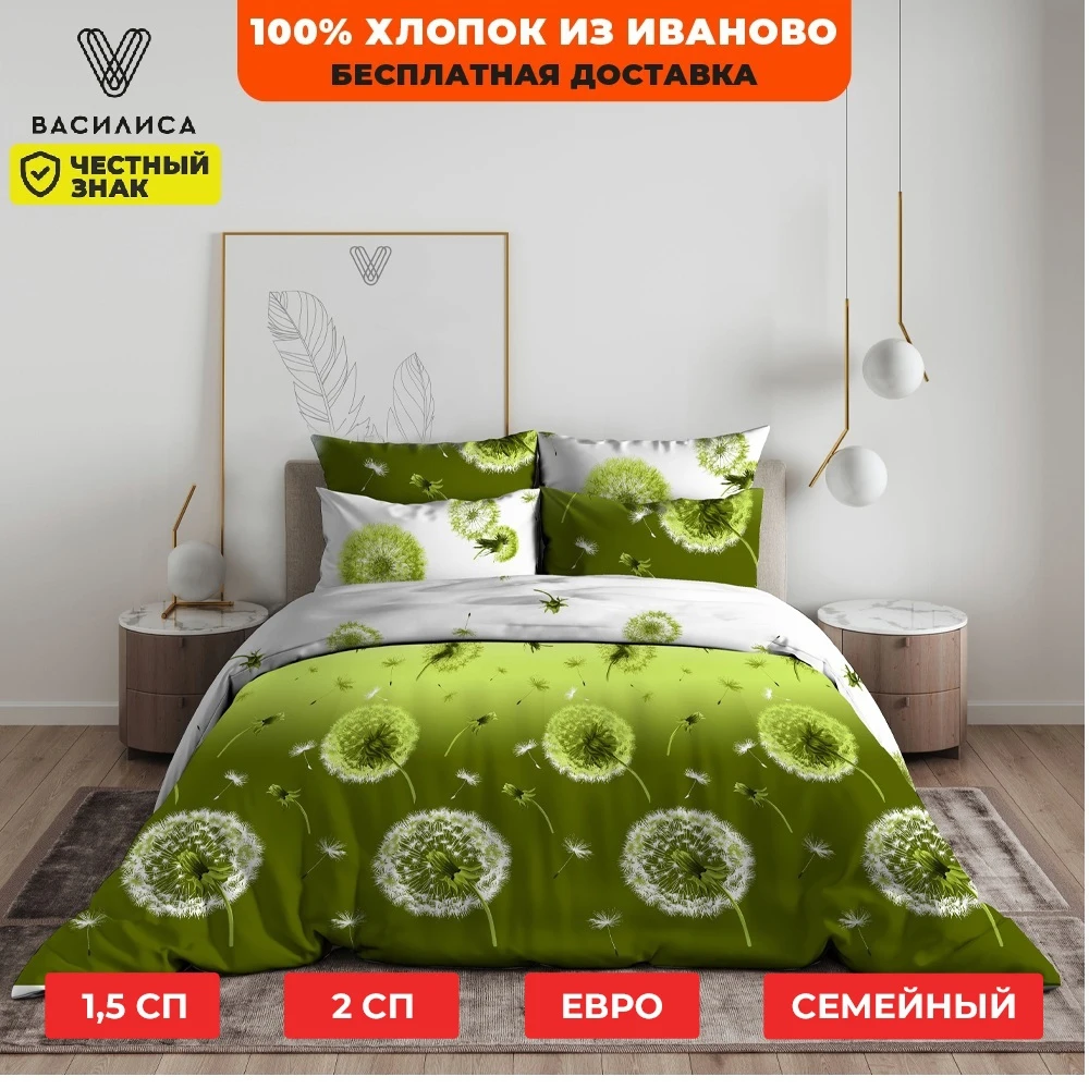 Постельное белье Белый одуванчик, бязь, хлопок, Василиса, 1,5 спаль...