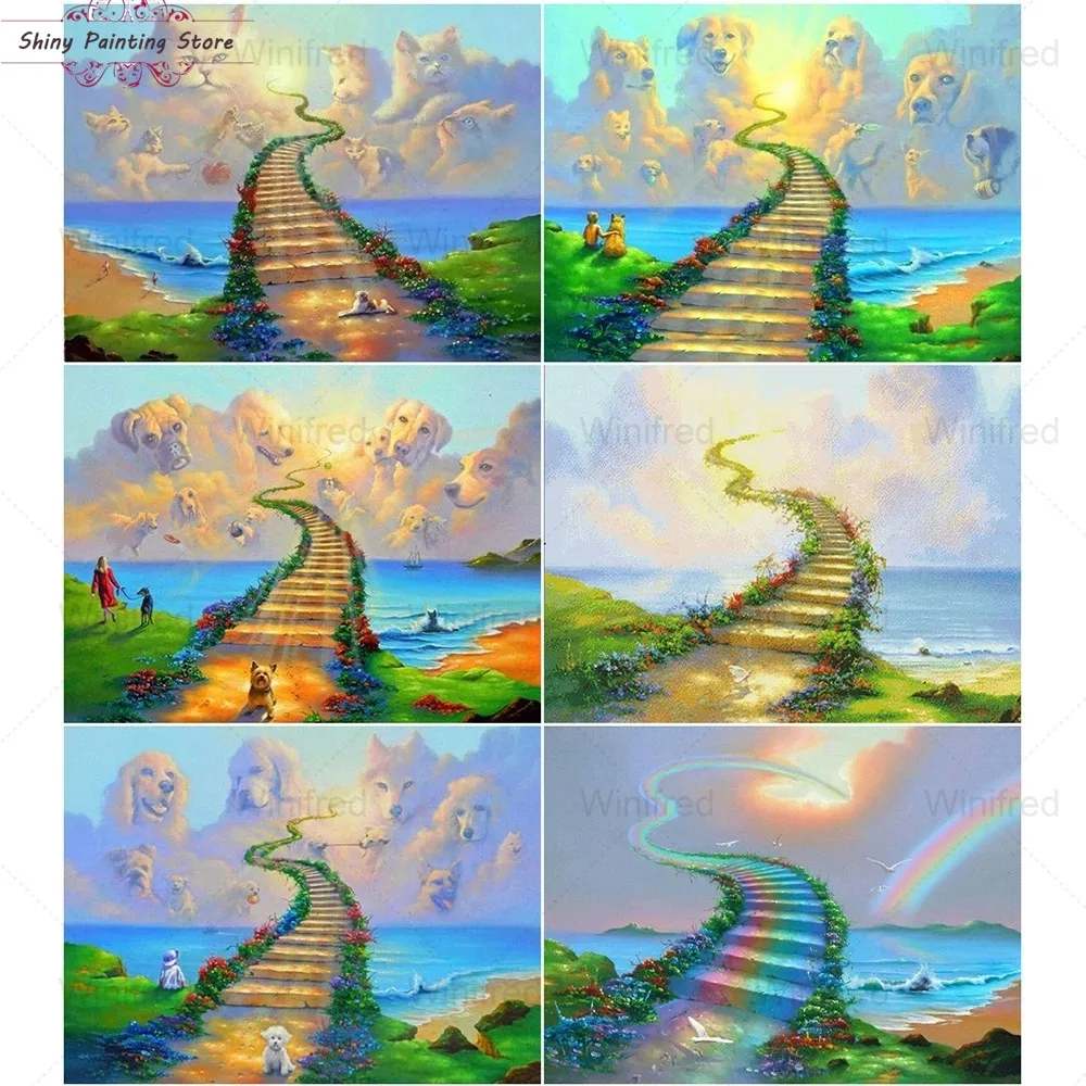 Алмазная 5D картина сделай сам в форме кошки, собаки, облака, неба, моста, пейзажа, мозаика, полная Алмазная вышивка, красивый пейзаж, картина