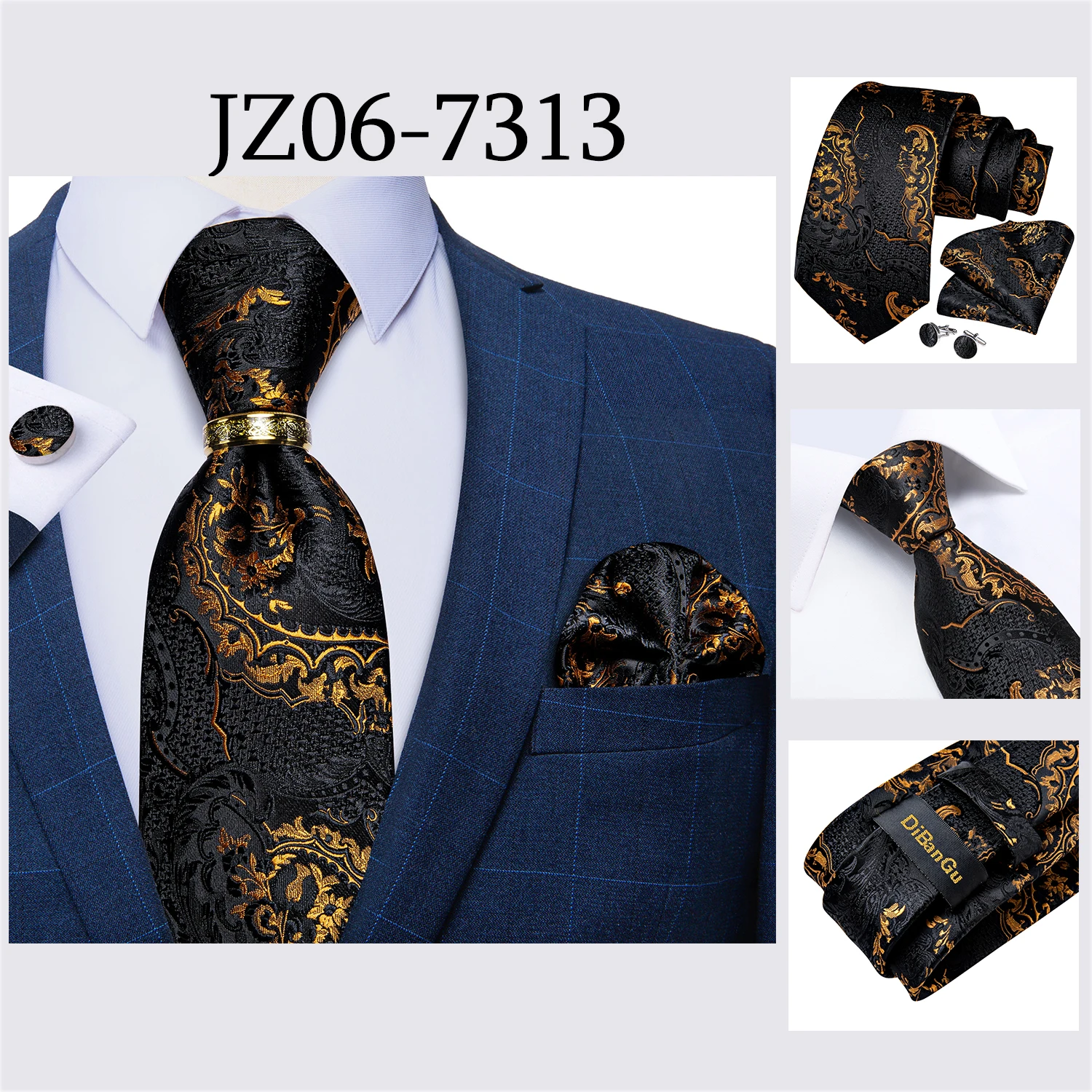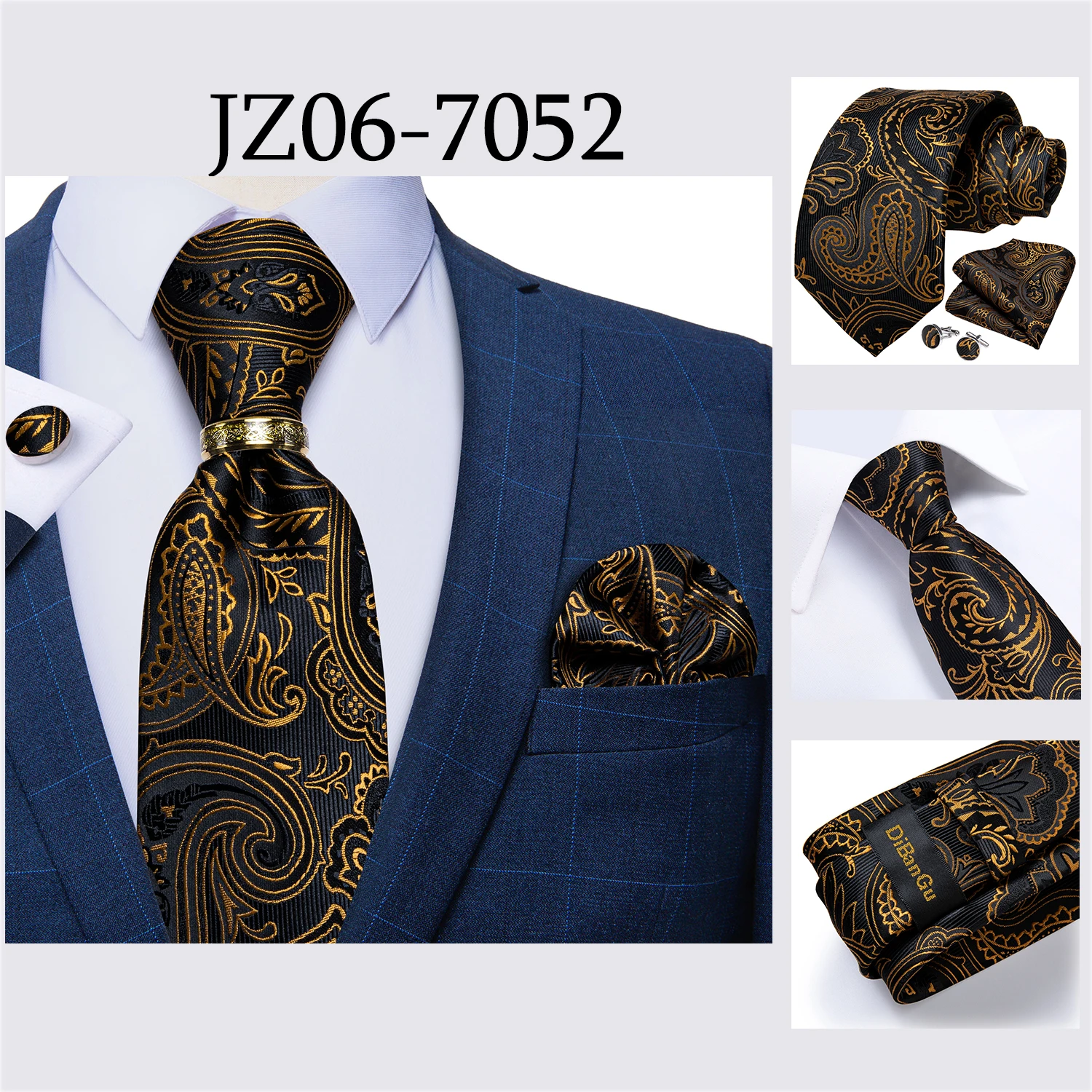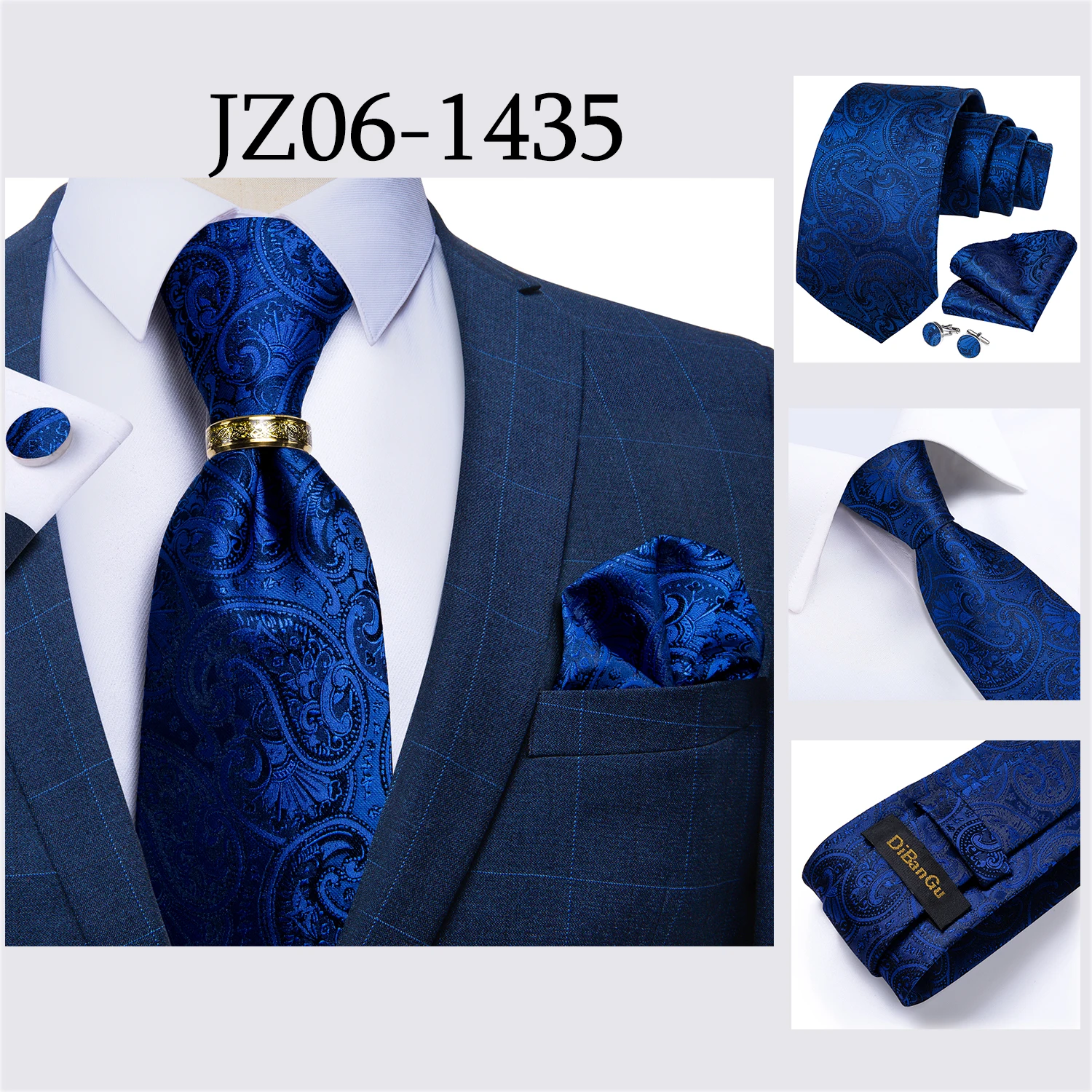 Мужской галстук, голубой, золотой, Пейсли, качественный Свадебный галстук для мужчин, галстук, кольцо, Hanky, запонки, шелковый галстук, набор, DiBanGu, дизайнерский, Деловой, JZ03-7281