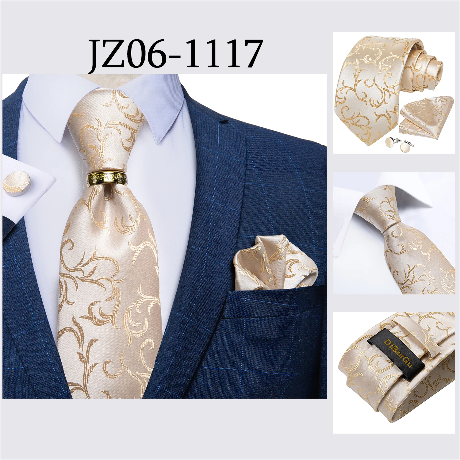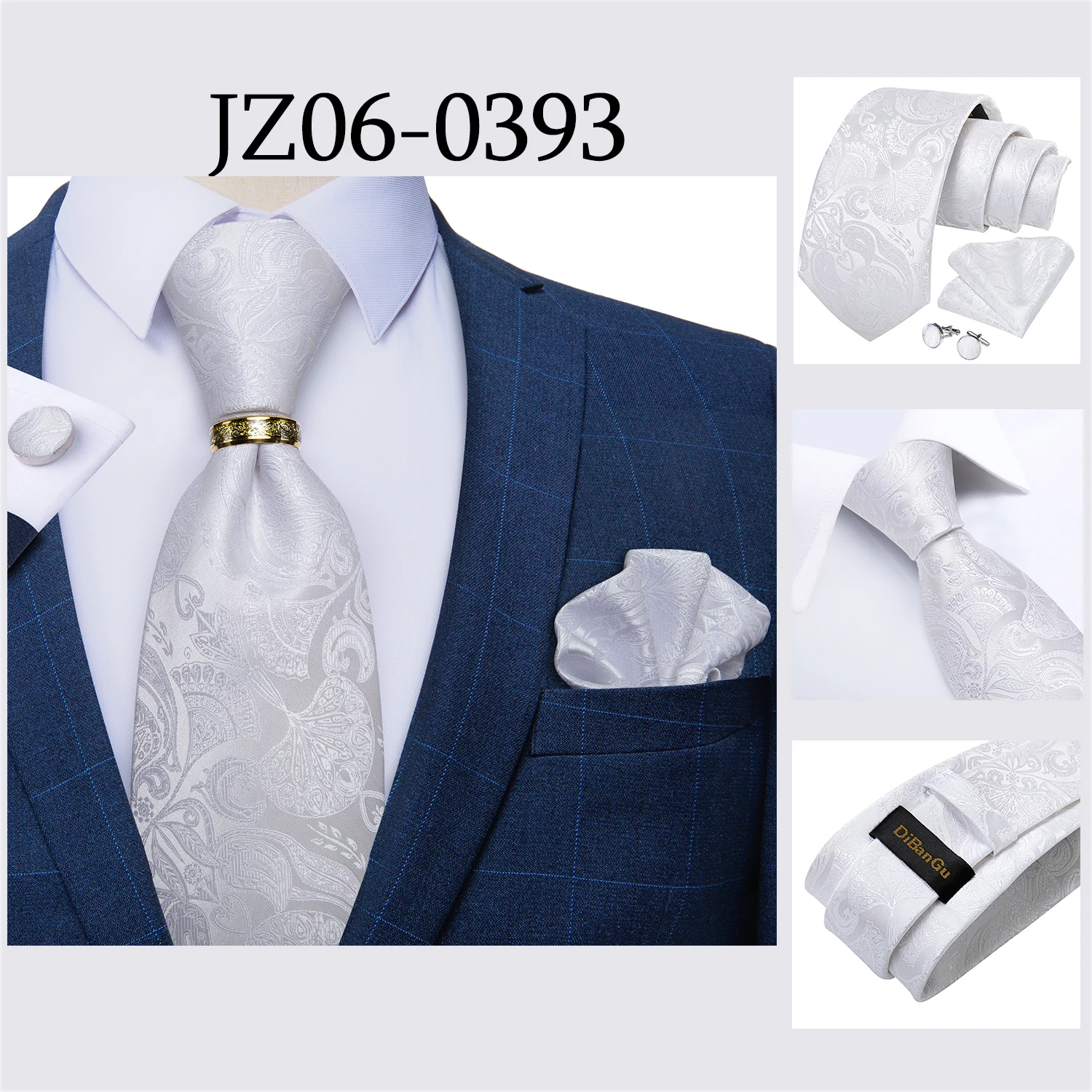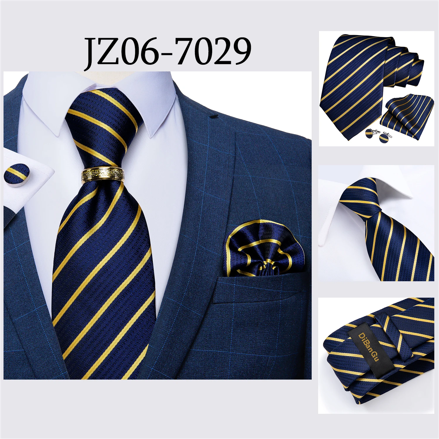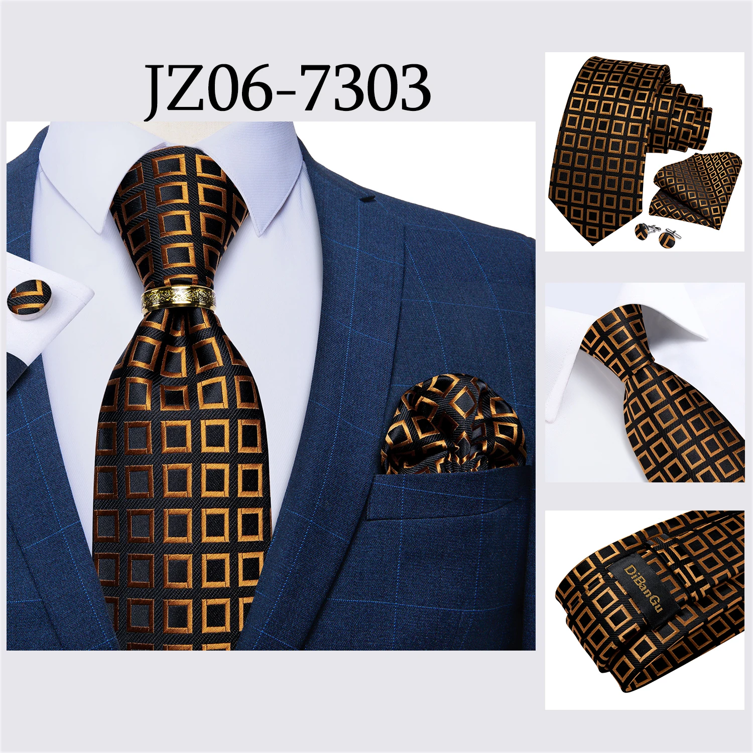 Мужской галстук, голубой, золотой, Пейсли, качественный Свадебный галстук для мужчин, галстук, кольцо, Hanky, запонки, шелковый галстук, набор, DiBanGu, дизайнерский, Деловой, JZ03-7281