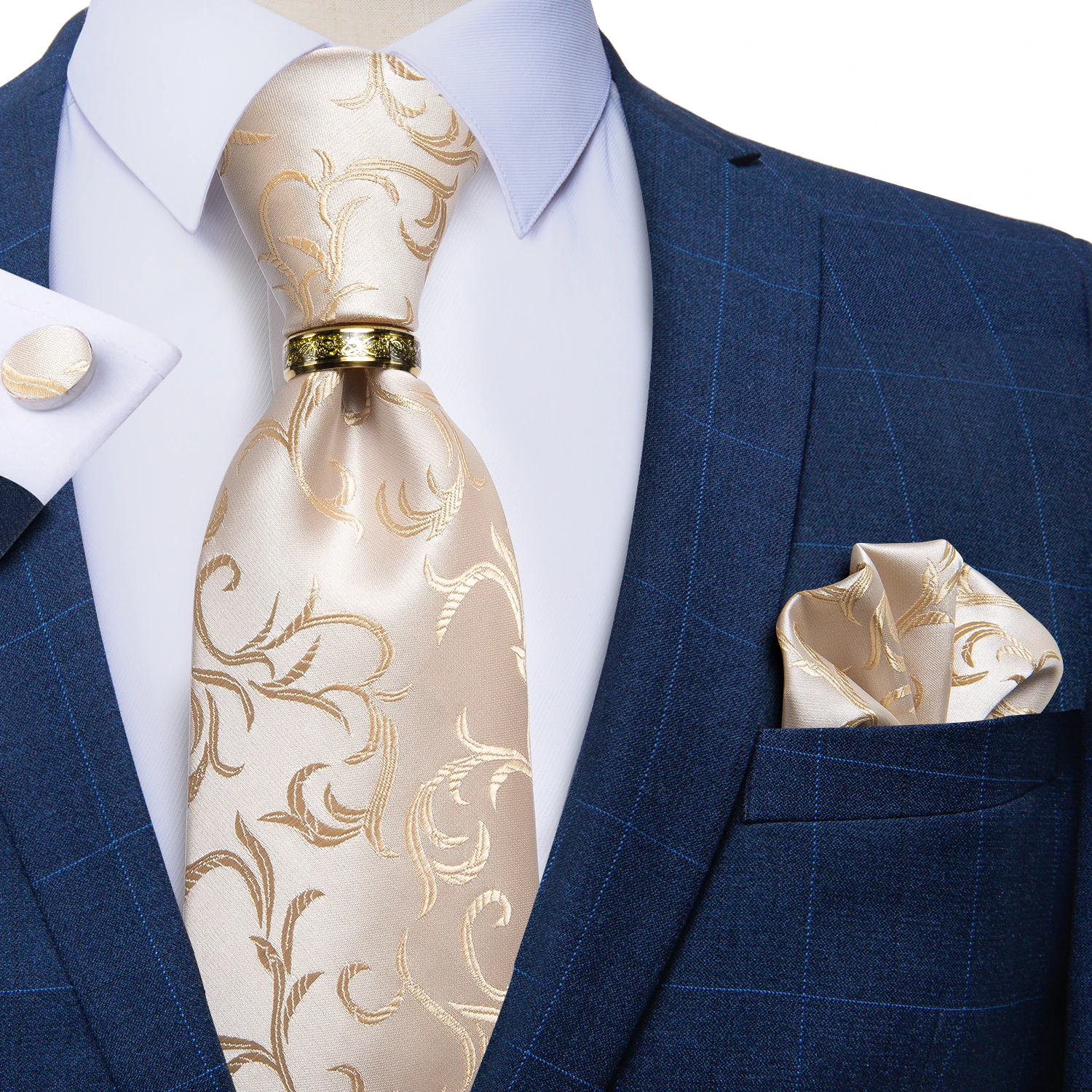 Бежевый цветочный мужской галстук, шейный платок и Запонки Галстуки для свадебной вечеринки для мужчин из нержавеющей стали кольцо дракона Мужские аксессуары подарок