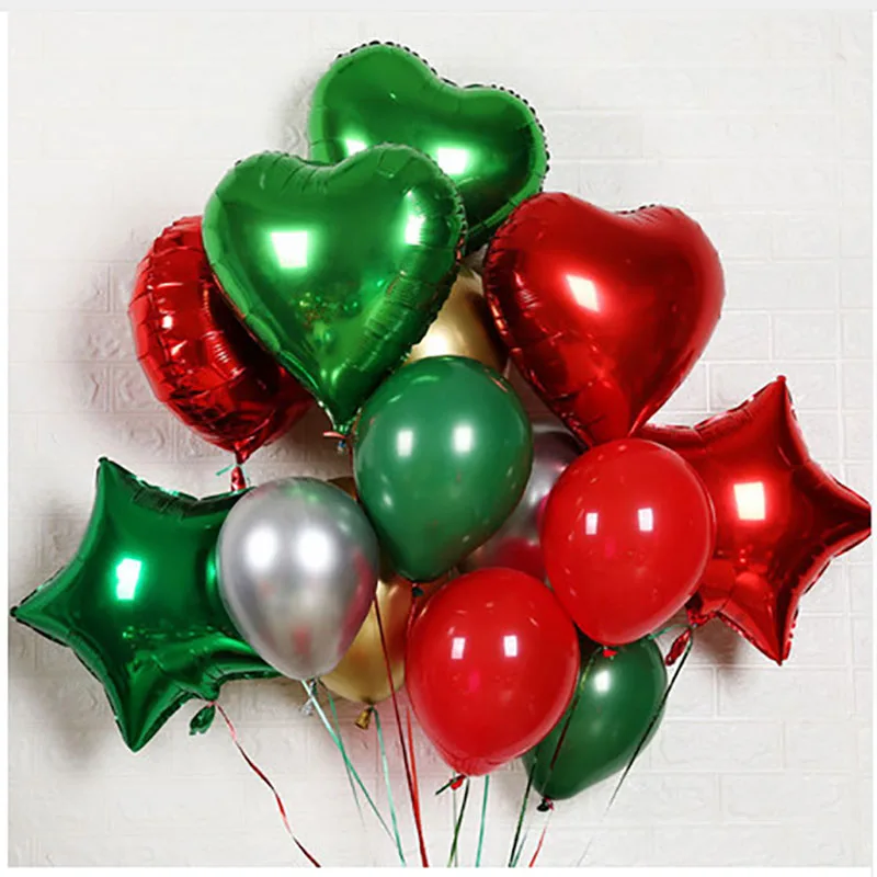 Рождественский красный зеленый фольгированный шар, снег, рождественская елка, Санта-Клаус, воздушные шары, рождественские товары для нового года