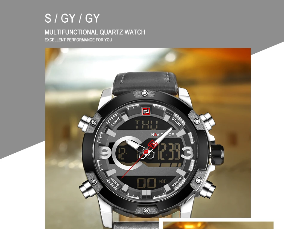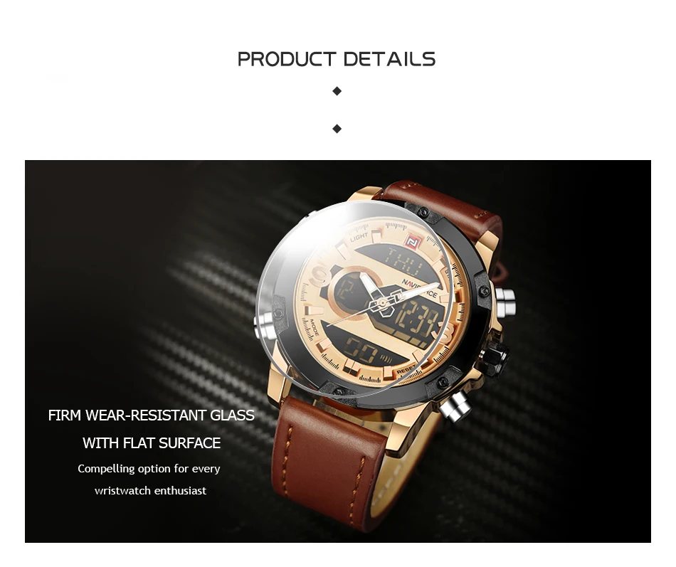 Часы NAVIFORCE мужские с двойным циферблатом, модные деловые светящиеся светодиодные цифровые водонепроницаемые с кожаным ремешком, с хронографом