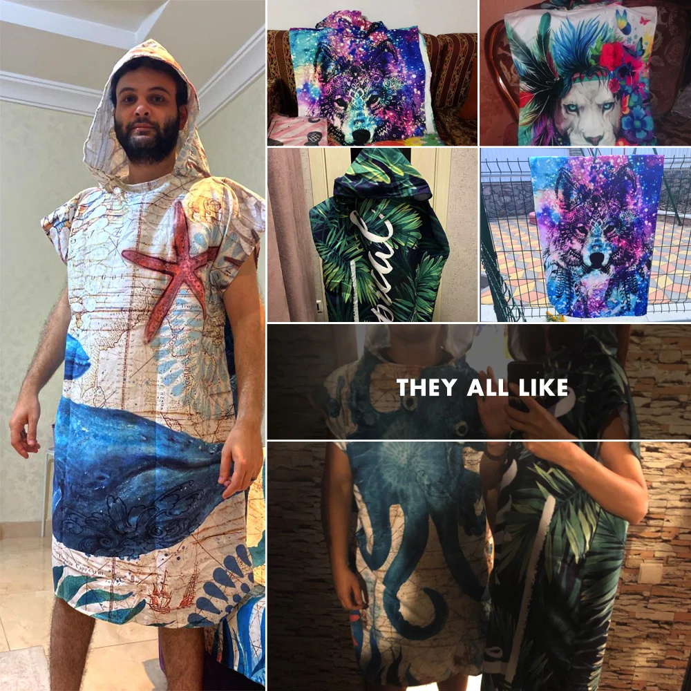 Пончо из микрофибры с капюшоном для серфинга, полотенце-накидка, Же...