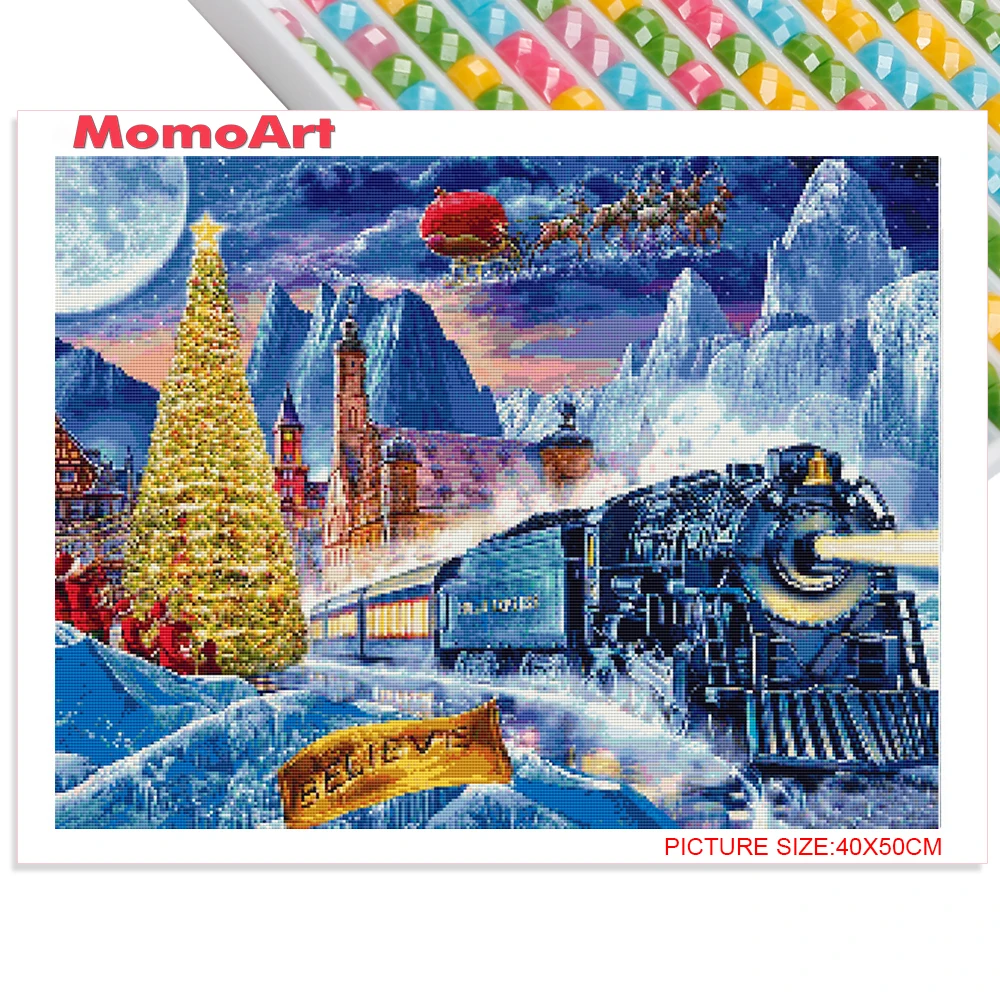 Алмазная 5D Вышивка MomoArt, живописная картина из страз, зимний поезд, полный квадратный Декор стразы, декор для рождественской комнаты