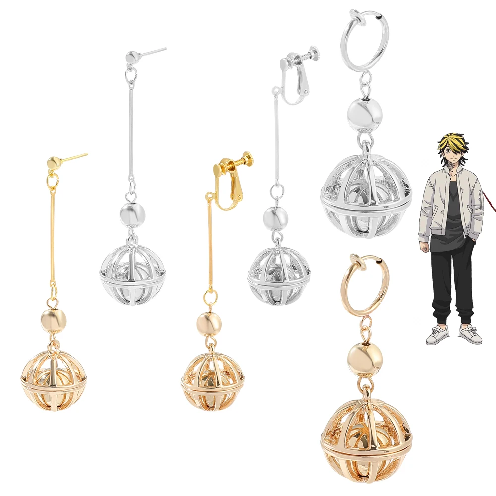 Серьги-клипсы унисекс, аниме Токио Мстители, казутора ханемия, ювелирные изделия для косплея, подвеска с полым шариком