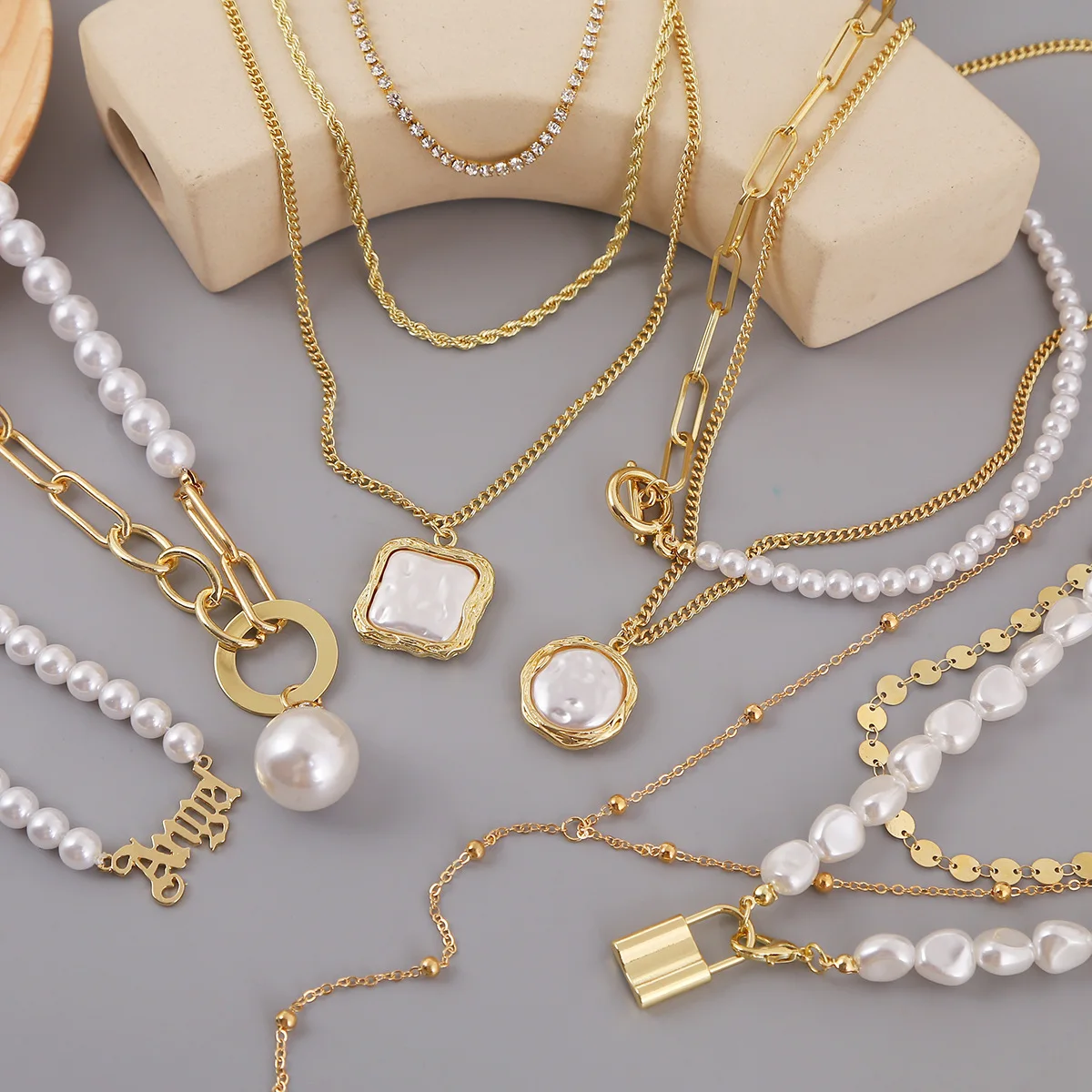 珍珠项链女跨境新品配饰热卖 项链小众设计感 欧美亚马逊复古夸张珍珠项链女