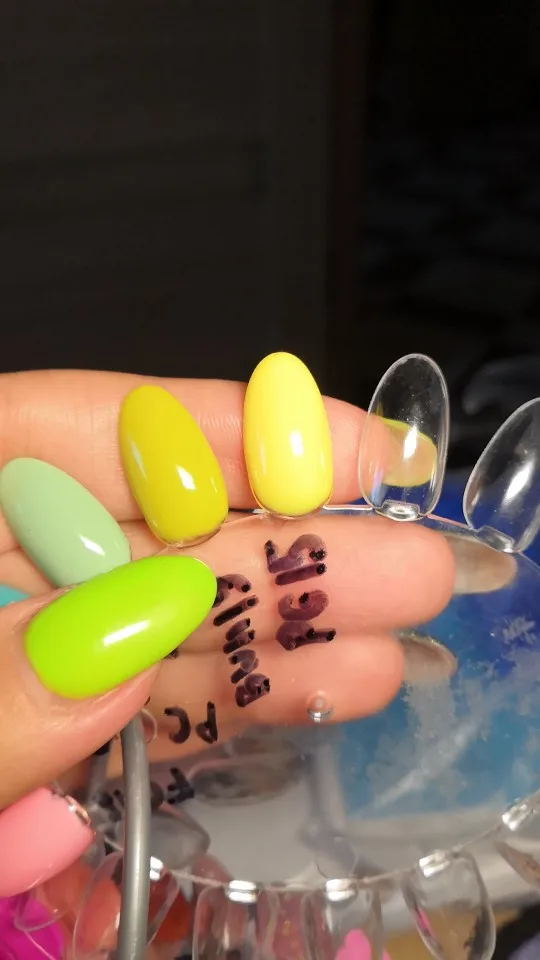 Лаки красивые, хорошо пигментированы, полностью перекрывают за два нанесения, хорошо ложится, бутылочки полные, по 10мл, на фото лаки без нанесения топа (не успел прийти), я очень довольна заказом, пришли за две недели)) рекомендую!))