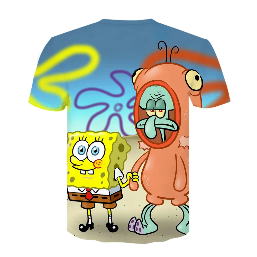 Новая Веселая желтая футболка с изображением Боба для мальчиков и девочек, детская футболка с 3D рисунком из губки, спортивный топ с короткими рукавами в стиле аниме с изображением героев мультфильмов, унисекс