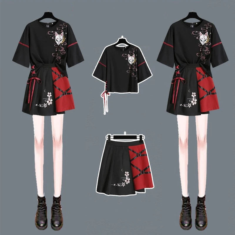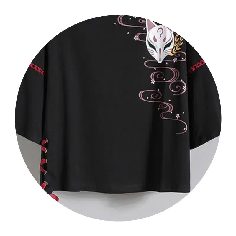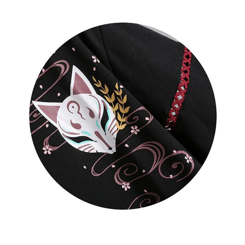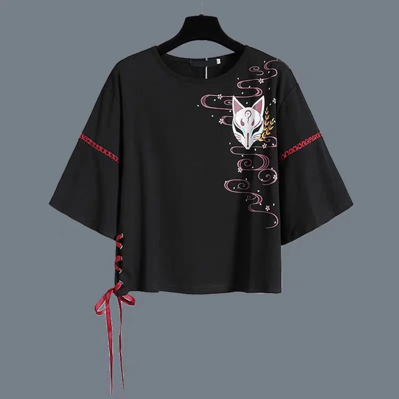 Летняя футболка с красной лентой в стиле аниме для девушек в стиле "Лолита", женское платье ханьфу из лисы для взрослых, женская одежда, косплей, костюм на Хэллоуин