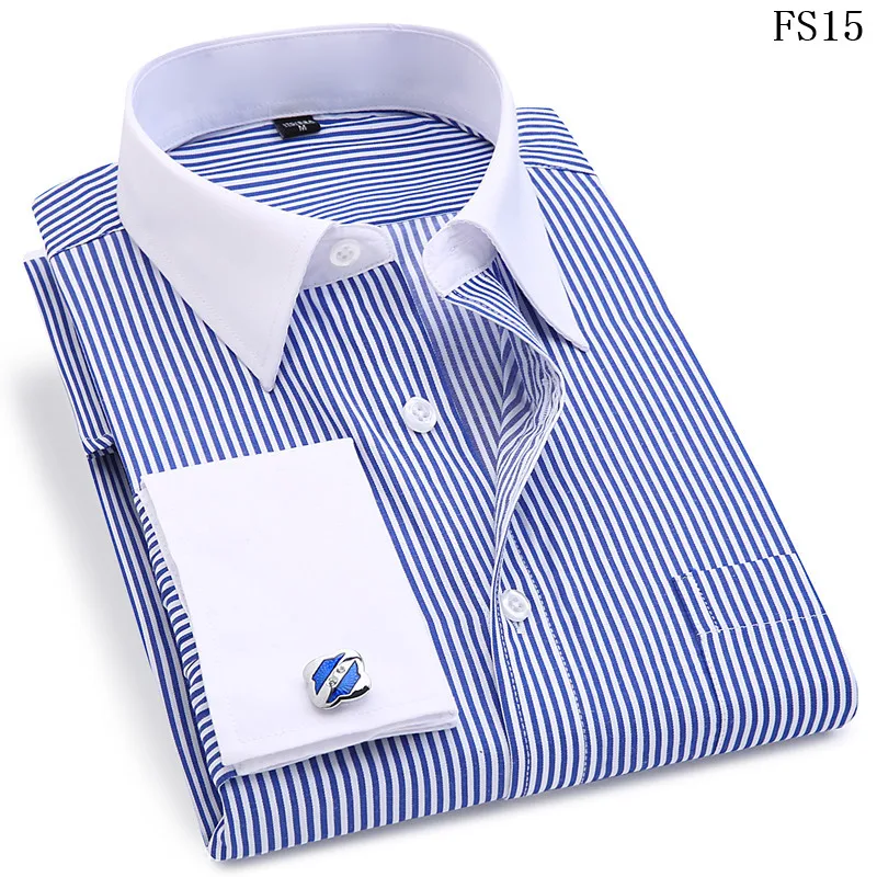 Рубашка мужская классическая с французскими манжетами, Повседневная белая, на пуговицах, с длинным рукавом, запонки в комплекте, 6XL