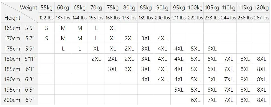 SizeM, L, XL, XXL, XXXL, 4XL, 5XL, 6XL