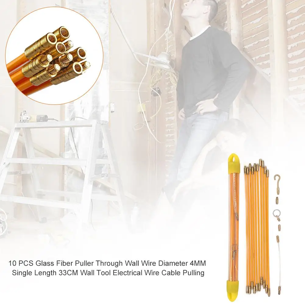 10 шт., съемник из стекловолокна с помощью стенной проволоки диаметром 4 мм, одна длина 33 см, настенный инструмент, электрический провод, кабель, тянущий #35