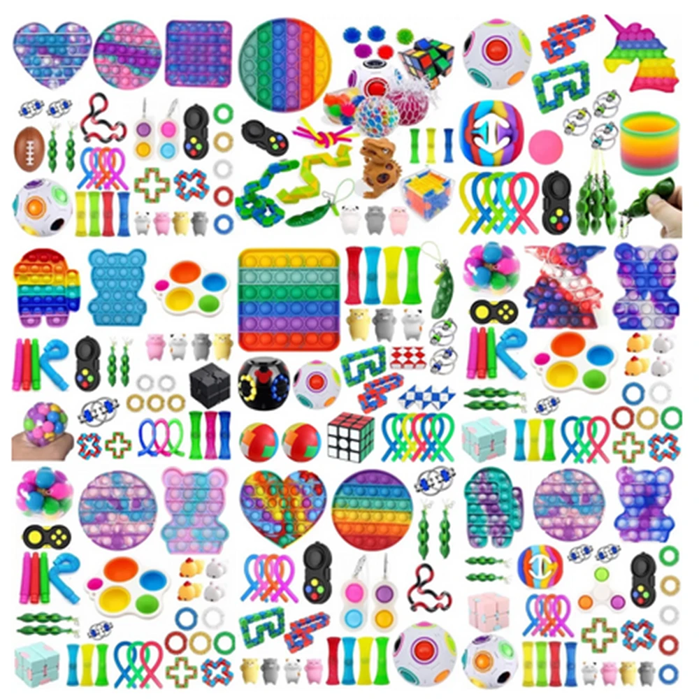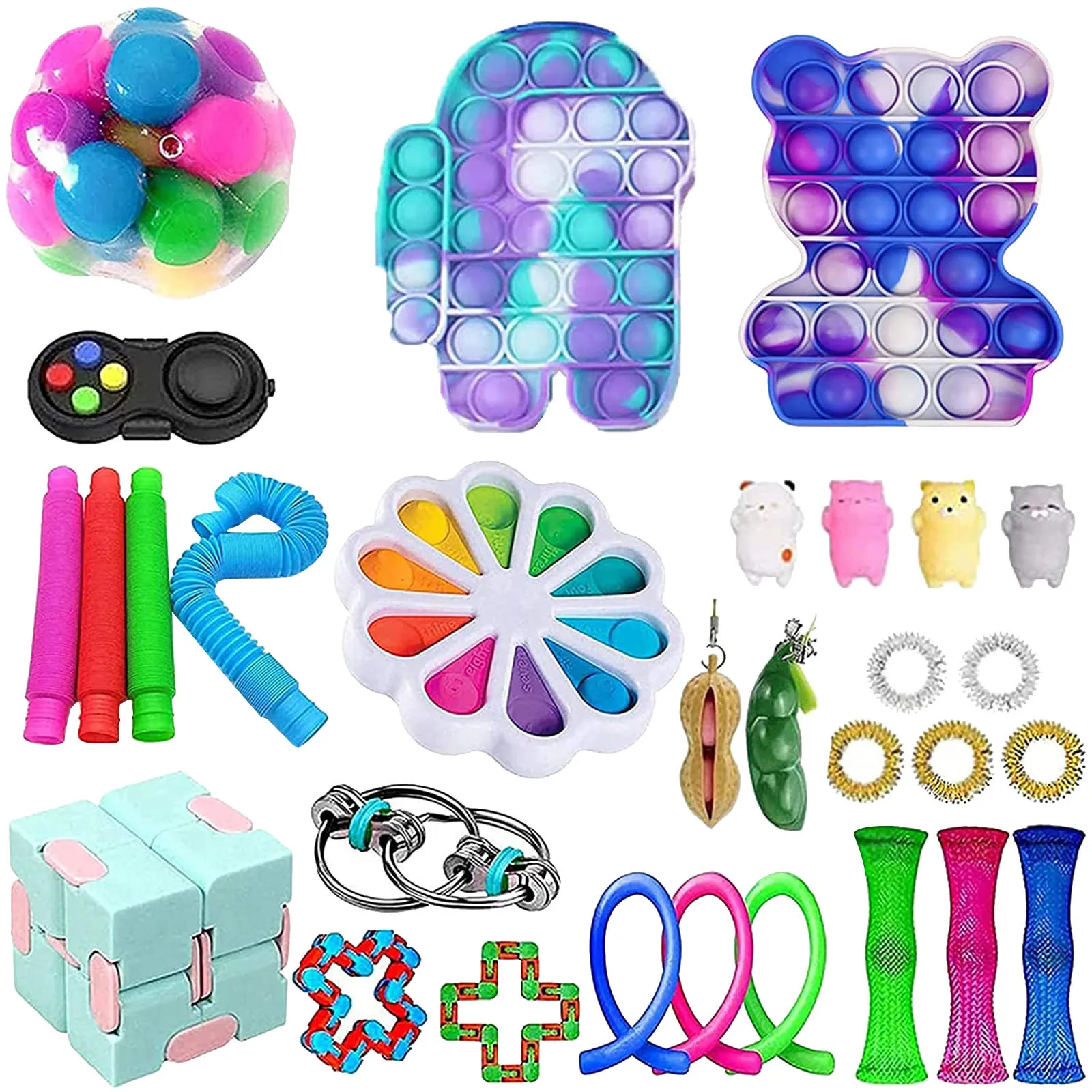 Полный набор фиджет-антистресс, набор игрушек с пузырьками для взрослых и детей, сенсорная антистрессовая игрушка, коробка для игрушек