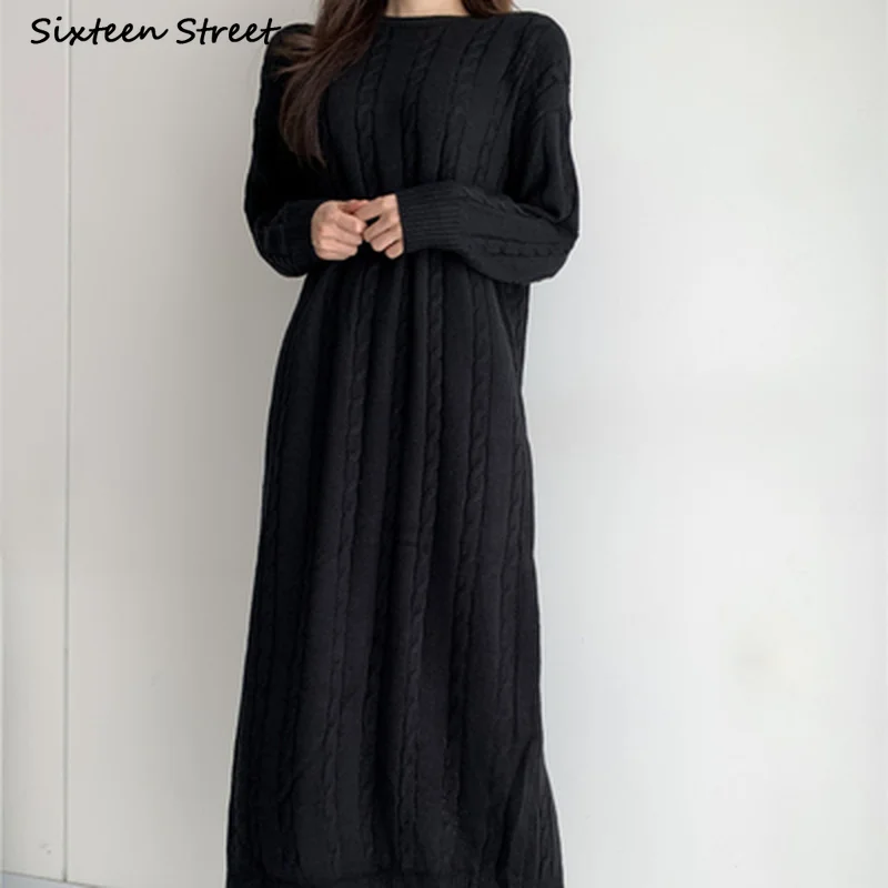 Женское трикотажное платье, длинное винтажное платье-свитер черного...
