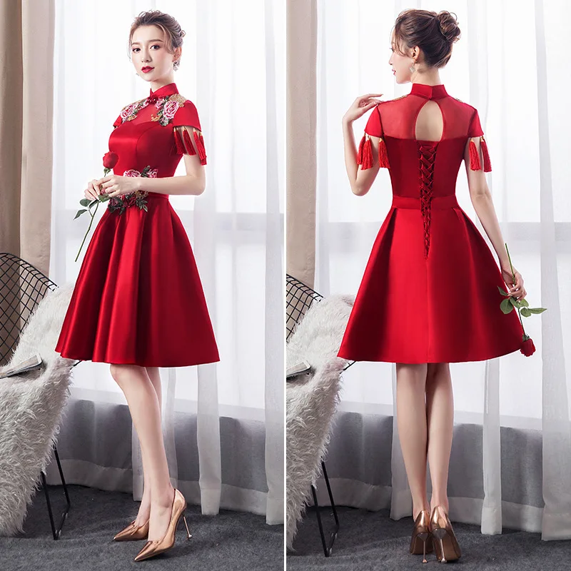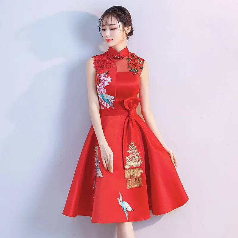 Винтажное атласное китайское платье Ципао с воротником-стойкой и вышивкой в виде феникса, облегающее вечернее платье для выпускного вечера, длинное платье большого размера 3xl