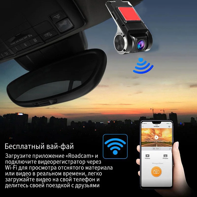 Видеорегистратор автомобильный Full HD с поддержкой Wi-Fi, 1080P