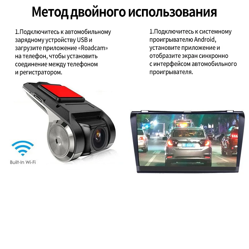 Автомобильный видеорегистратор 2 в 1, Wifi, 1080P, Android, USB, ск...