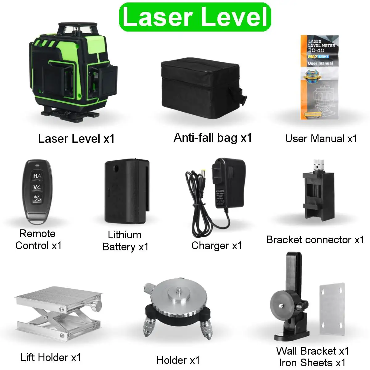 Самонивелирующийся лазерный уровень 4D, 16 линий, 2021 градусов