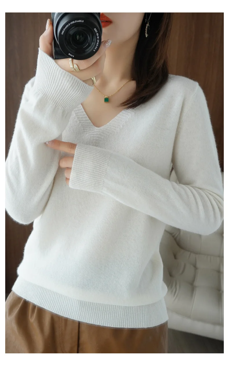 Женский кашемировый пуловер с V-образным вырезом, с кружевным воротником