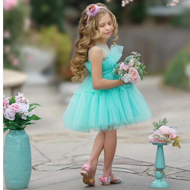 Вечернее платье принцессы для девочки, Элегантное свадебное платье, детские платья из тюля с цветами на новый год, пышное вечернее платье для девочки на выпускной